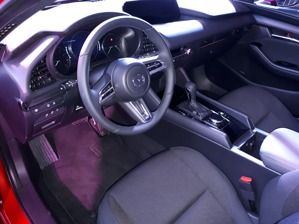 Не потому ли, что машина изменилась в техническом плане. Теперь сзади не многорычажка, а упругая балка. А на первичную комплектацию идут шины с более мягкой боковиной. Японцы обещают, что сделали это не ради экономии. «Трешка» так же азартно рулится, но при этом стала комфортнее. Проверить это не удалось, ведь презентация была статической. Поэтому пока поверим маздовцам на слово.