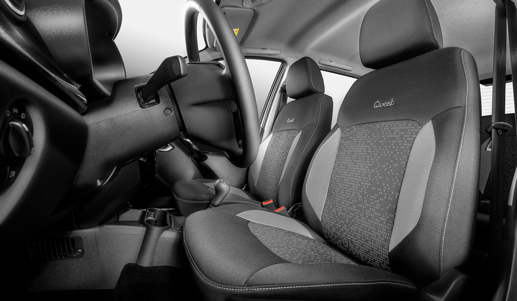 На самом деле, у исполнения Quest не так много отличий от «простой» LADA Granta Cross: в первую очередь, это черная окраска крыши, рейлингов и колес, а также фирменные шильдики на кузове, порогах и сиденьях. Сами сиденья обшиты водоотталкивающей тканью.