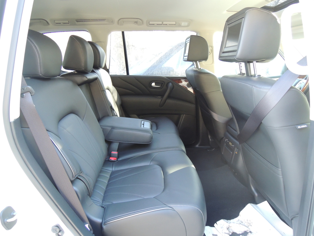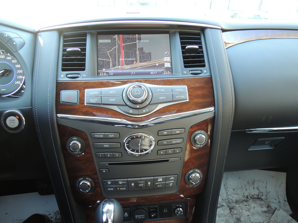 Про интерьер вообще отдельная песня. Если в предшественнике еще можно было легко найти огрехи в виде откровенно дешевых пластиковых элементов и «псевдодеревянных» вставок не самого лучшего качества, то в обновленном автомобиле такого нет и в помине. Теперь практически все, что можно обтянуто кожей, а пластик если и присутствует, то он — прорезиненный, мягкий на ощупь. Таким образом, интерьер выглядит строго и стильно, ничего не скрипит и не трещит, что вкупе с хорошей шумоизоляцией создает дополнительное ощущение комфорта. Любителям хорошей музыки наверняка придется по вкусу проверенная временем аудиосистема от американской компании Bose с весьма недурственным звучанием, а четырехзонный климат-контроль не даст ни водителю, ни его пассажирам замерзнуть зимой или перегреться летом. Да и с сенсорным дисплеем, на который выводятся показатели меню автомобиля, камер кругового обзора, бортового компьютера и прочая полезная информация, разобраться не представляет никакого труда. Разве что с меню навигации придется помучиться, кажется, что Infiniti здесь пытается поспорить с конкурентом из Lexus, у кого из них оно получится «замороченнее». Но такие мелочи — вопрос привычки и некоторого времени, а многие современные автомобилисты и вовсе пользуется навигацией, встроенной в подавляющее большинство моделей смартфонов. Традиционные аналоговые часы расположились строго по середине торпедо, что лишний раз подчеркивает солидность и строгость интерьера, а также социальный статус владельца. Честно говоря, придраться к внутреннему убранству QX80 практически невозможно, посетовать можно разве что на слишком мелкие кнопочки управления стереосистемой, круиз-контролем и бортовым компьютером, расположенные на руле. Но последнее — стопроцентная придирка...