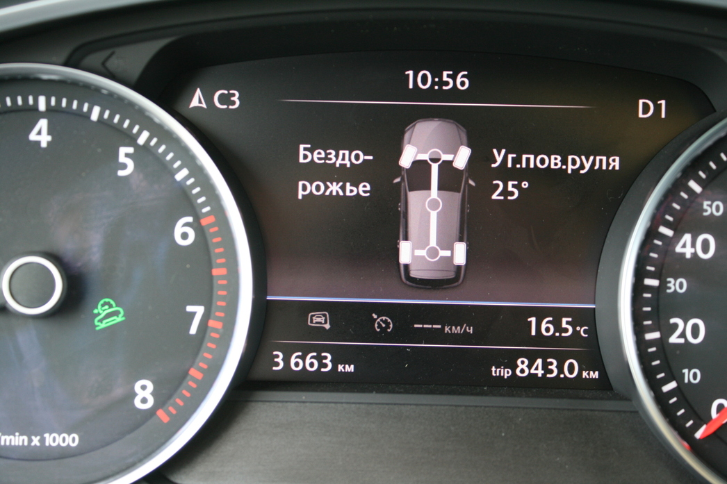 Пара дизель-КП, помнится, оставила очень приятные впечатления. Как с точки зрения динамики, так и с позиций экономичности. Бензиновый мотор тоже порадовал бодрым подхватом и разгоном. И даже характерная «фольксвагеновская» настройка педали газа не особо напрягала. Но в чем бензин радикально проиграл дизелю, так это в экономии топлива. Если дизельная машина в смешанном режиме показывала расход в районе 8 литров на 100 км пробега, то «бензинка» демонстрировала на дисплее бортового компьютера цифры 13-14 литров на «сотню».
