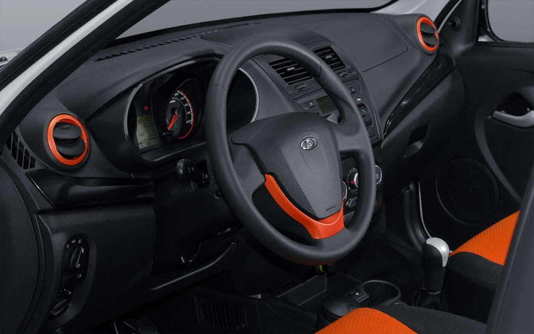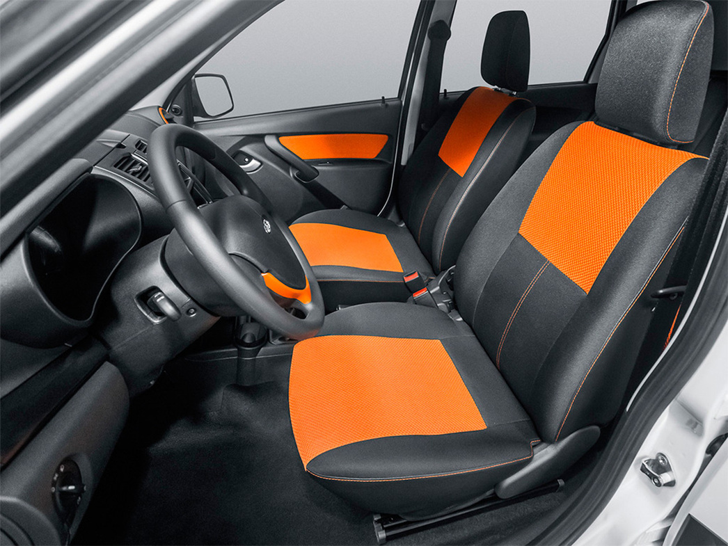 Теперь о вкусовщине. Но не о нашей с вами, а о присущей самому автопроизводителю. Ведь совершенно непонятно, чем руководствовались на заводе при выпуске Kalina Cross, сконцентрировав внимание на едких оранжевых тонах. Даже вывели специальный цвет кузова – «Апельсин». Всем ли потребителям это нравится? Отнюдь. Спасибо, что есть в гамме расцветок и другие, менее вызывающие. Но вот как быть с интерьером, где полным-полно броских и откровенно раздражающих оранжевых вставок?