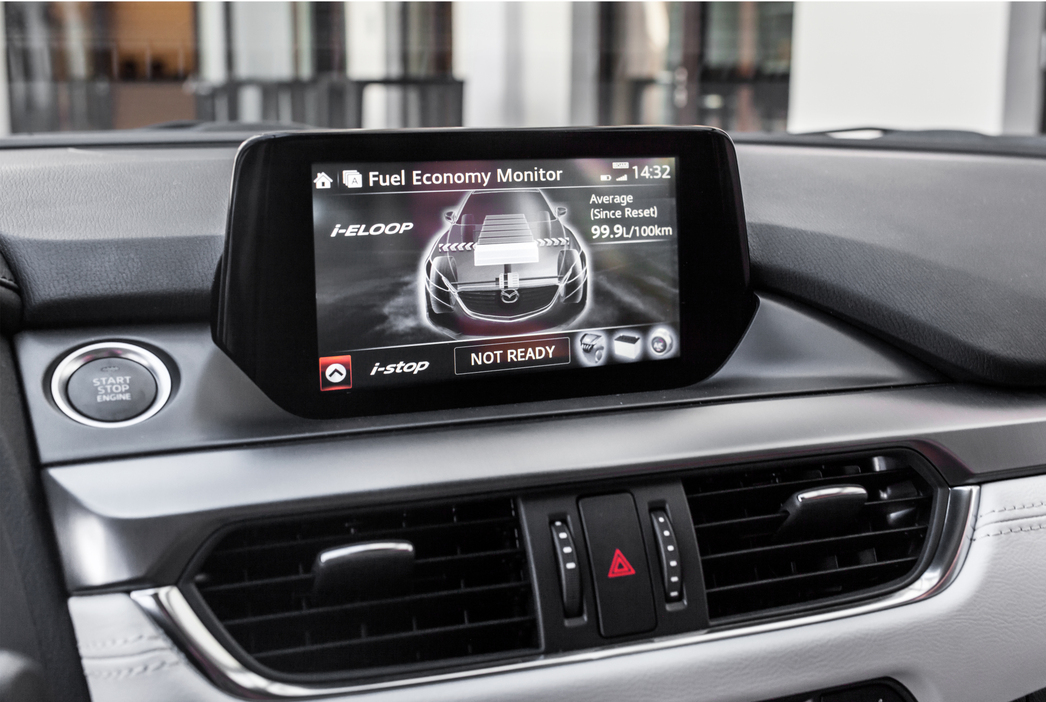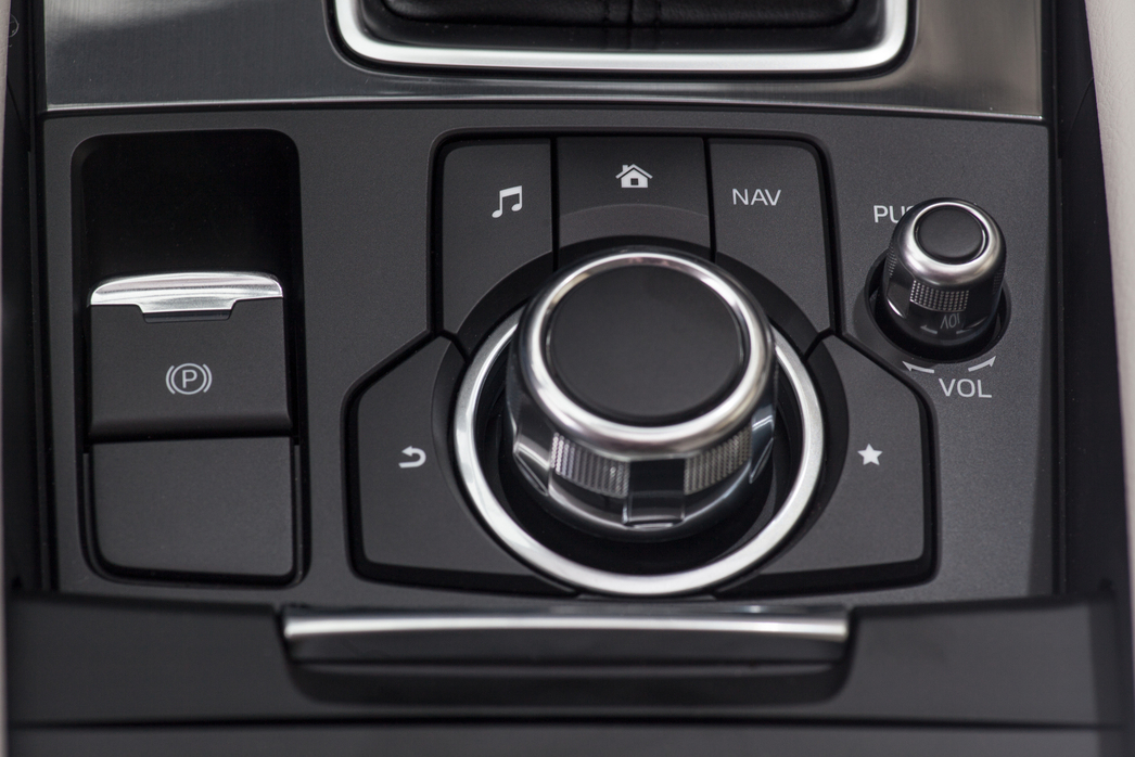 Я уже не раз писал оды шайбе управления фирменной мультимедиа MZD Connect, которая расположилась прямо под правой рукой рядом с селектором шестиступенчатой АКП, так что не буду повторяться. Но при том, что с точки зрения эргономики к управлению всевозможными настройками машины никаких претензий нет, «прицел» Head-Up дисплея в данном случае не только мне показался плодом какого-то странного стремления дизайнеров добавить в общем-то небесполезную «фишку», но сделать это по-своему. Конечно, выезжающее стеклышко наводит на аналогию с прицелом системы наведения истребителя, но считывать информацию с проекции на лобовом стекле гораздо проще.