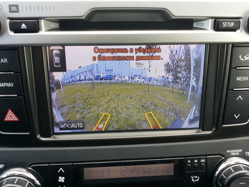 А какая приятная мелочь – камеры по кругу! На экране бортового компьютера видно все, что происходит вокруг автомобиля. Слепые зоны отсутствуют как класс, а значит, максимально снижена возможность наезда на препятствие или зазевавшегося пешехода. При движении на пониженной вперед по сложному рельефу, при крутом подъеме на гору, когда в лобовом стекле видно небо и только небо, на экран выводится картинка с передней камеры, где красными прямоугольниками отмечается положение передних колос относительно дороги. Пользуясь такой подсказкой любой без труда проведет автомобиль хоть по рельсам, хоть по гребням между разбитыми колеями лесной дороги, что более актуально.