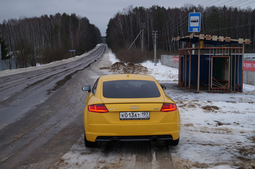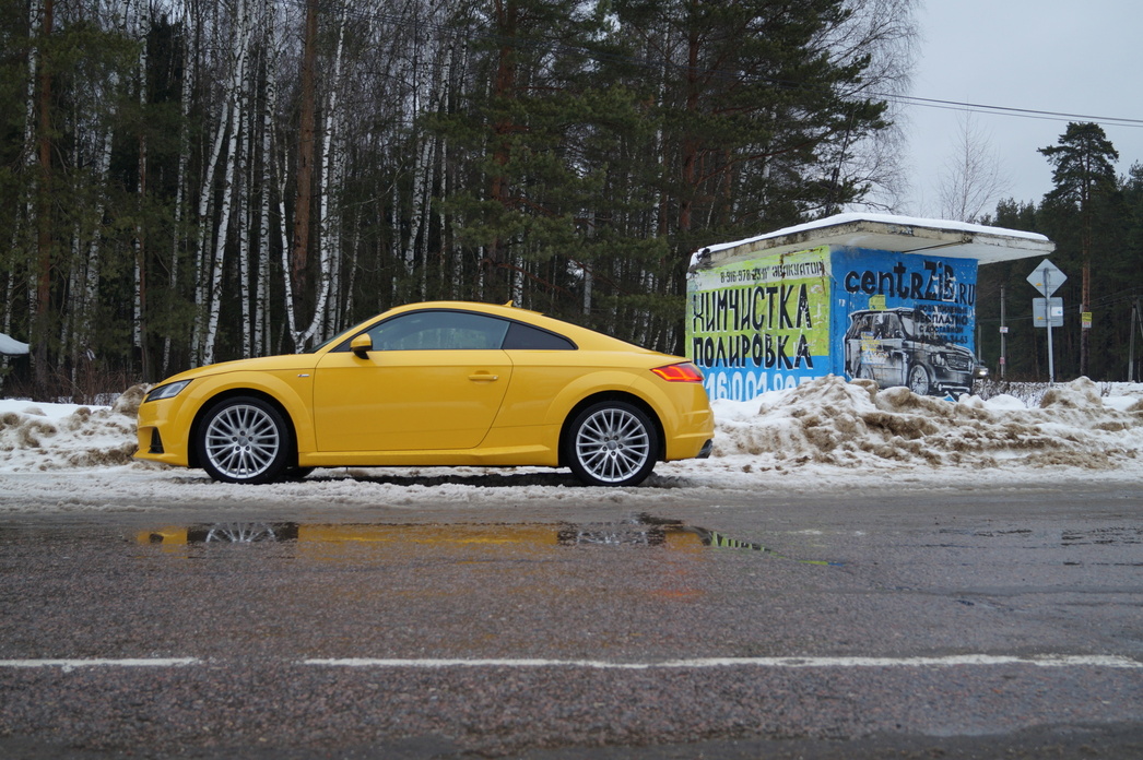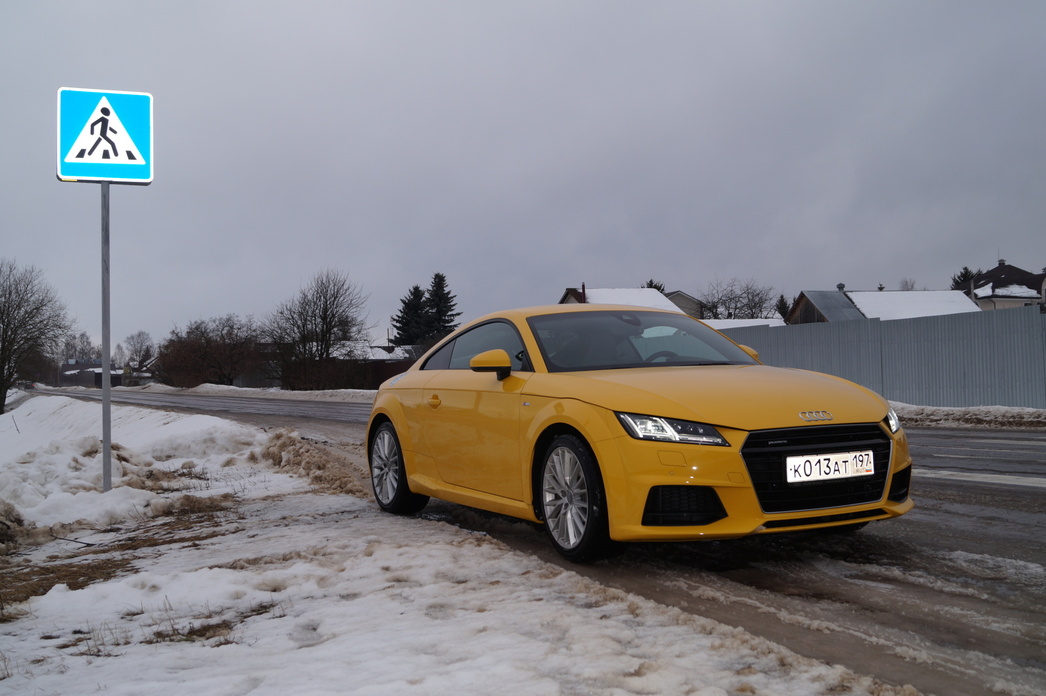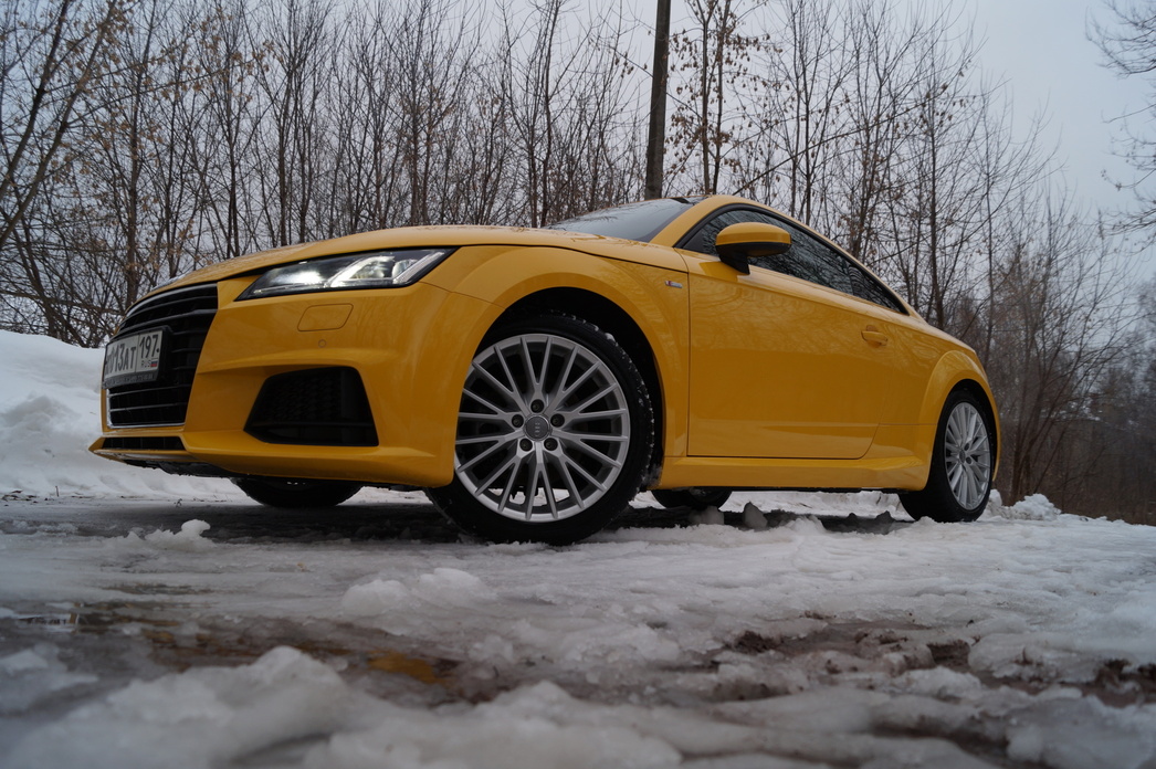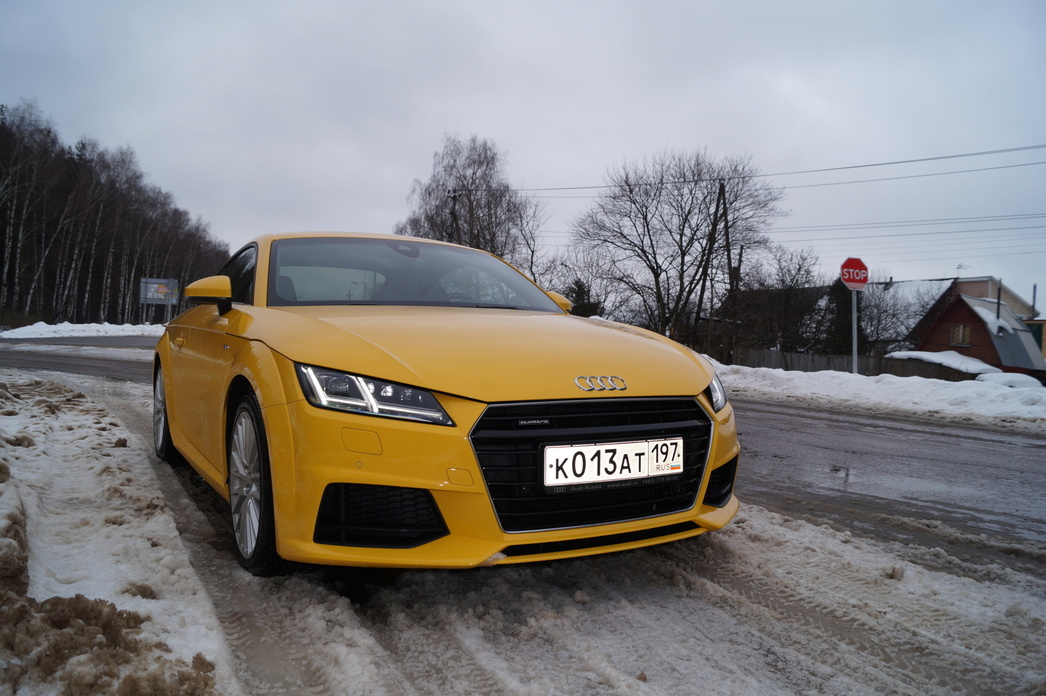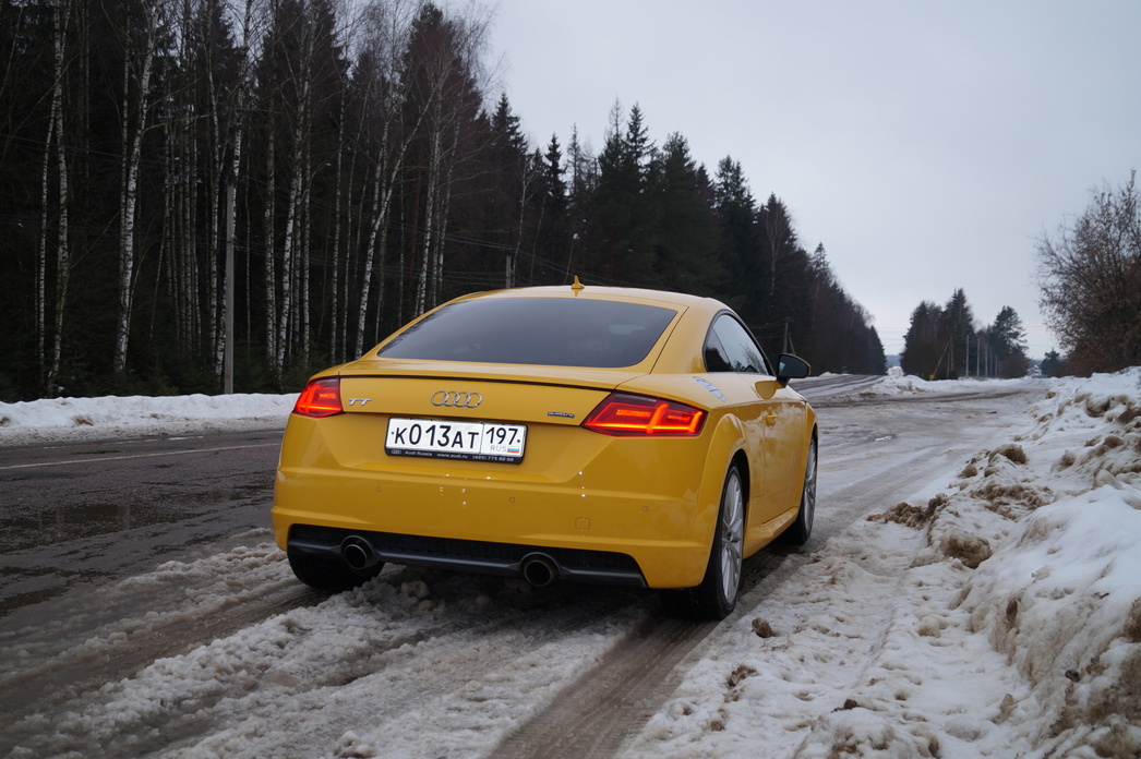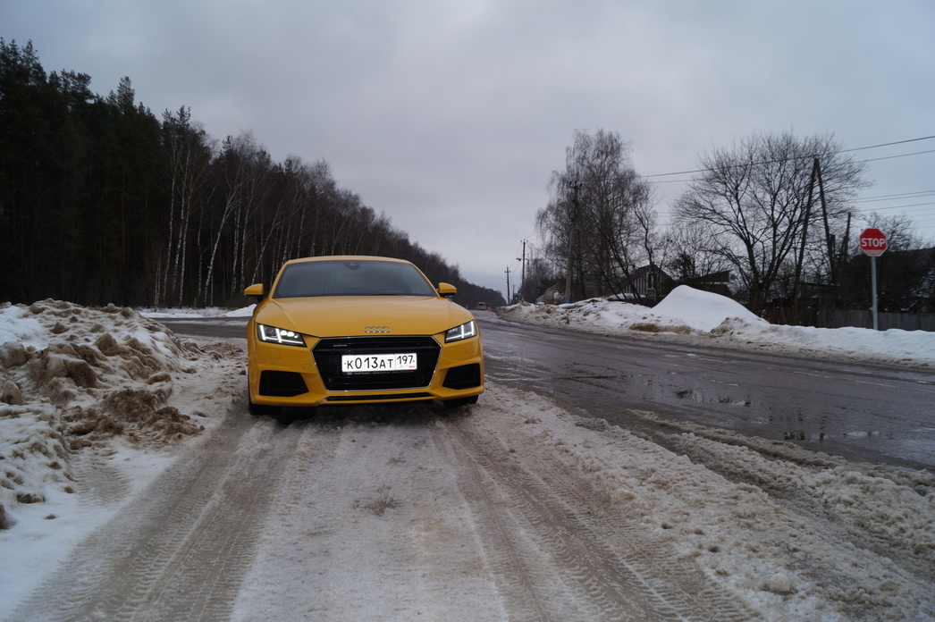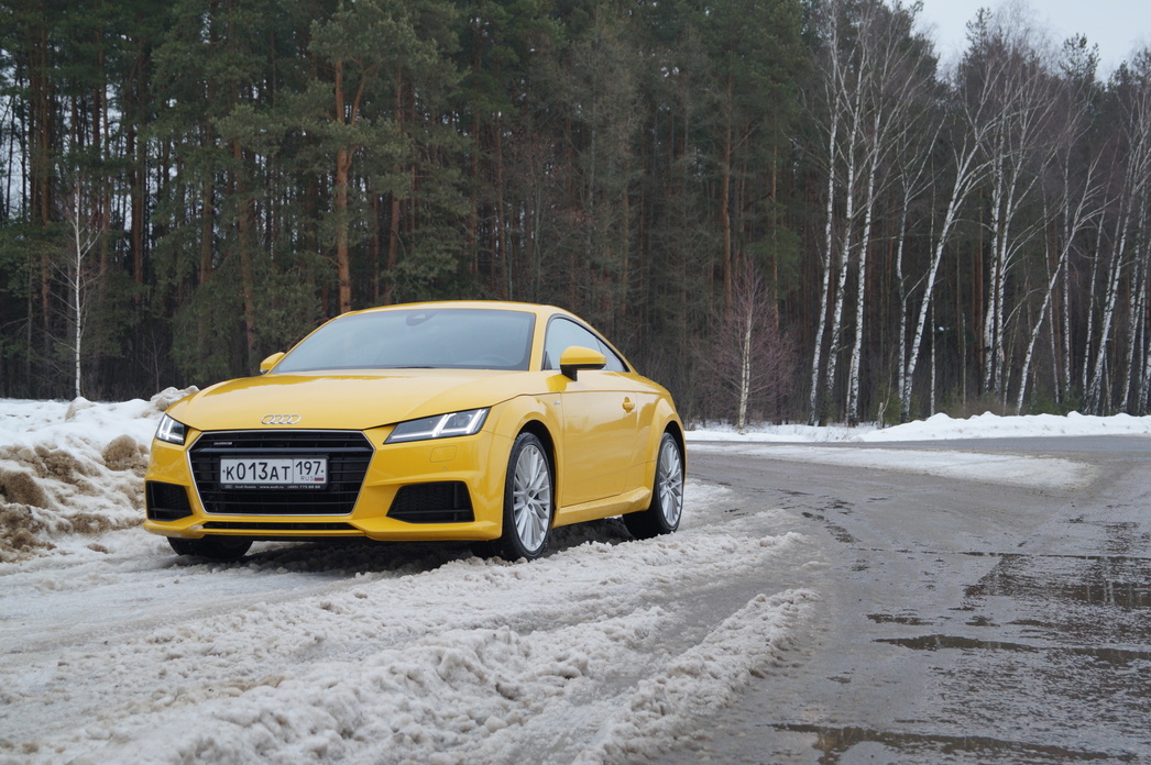 Когда судьба в очередной раз свела меня с Audi TT, на улице валил снег: машины буксовали, ерзали боком и собирались в массовку на очередном светофоре, так и не успев разогнаться от предыдущего. Но на моем лице сияла лучезарная улыбка, прекрасно гармонирующая с солнечной окраской кузова тестовой «тэтэшки». Коллеги не без иронии и сарказма желали мне удачи: давай, мол, вперед — самое время прохватить на спорткупе по заснеженно-обледенелой Москве и ее окрестностям. Вызов мной был принят с готовностью: в глубине души я верил, что машина не подведет.