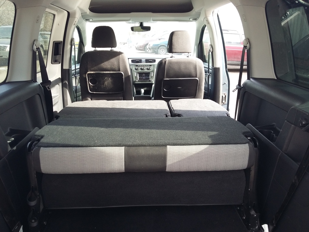 В остальном же Caddy, как и раньше, радует водителя и пассажиров отточенной эргономикой, обзорностью и фирменным ощущением «фольксвагеновской» добротности. Но самое главное у Maxi находится за спинками второго ряда сидений. А именно – третий ряд и приличный грузовой объем между их спинкой и пятой дверью. Понятно, что на третий ряд можно лишь детей малолетних погрузить – для ног взрослого там места откровенно мало. Но все же! Кроме того, длинный кузов позволяет перевозить по-настоящему большие предметы, не прибегая к услугам транспортных компаний.