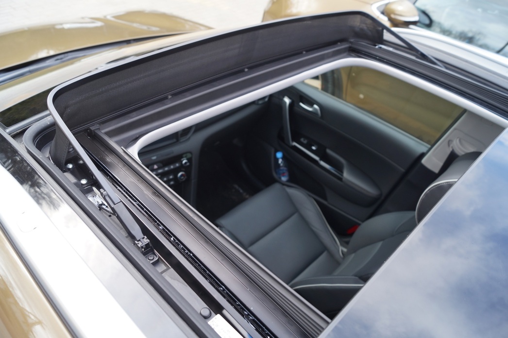 Отдельно хотелось бы отметить здоровенное стекло вместо крыши – «панорама» с люком, к которой приложили руку спецы из немецкой Webasto, увеличилась на целых 100 мм. Причем это не просто очередная чудо-опция, а самодостаточный элемент современного дизайна, подчеркивающий эстетические предпочтения владельца совсем не претендующего на премиальность KIA Sportage.