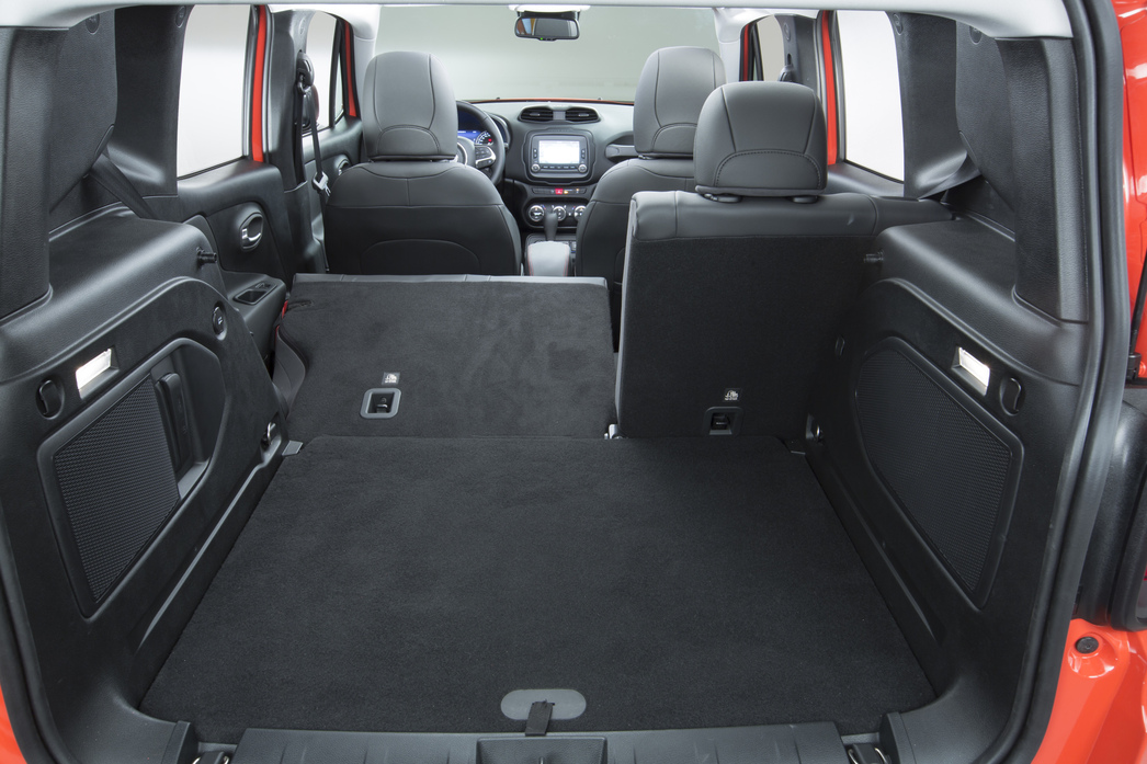 Кресло водителя Renegade – отнюдь не «американский диван», а вполне европейское «седло». Как, впрочем, и вся эргономика передней части салона следует традициям Старого Света. Что особенно порадовало, так это большое пространство для ног задних пассажиров. Понятно, что закинув ногу на ногу, как в каком-нибудь Skoda Superb, тут не рассядешься, но для столь невеликой машинки все очень не плохо – по крайней мере, получше, чем в большинстве одноклассников! И при этом объем багажника вполне пристойный для компактного кроссовера – 351 л.