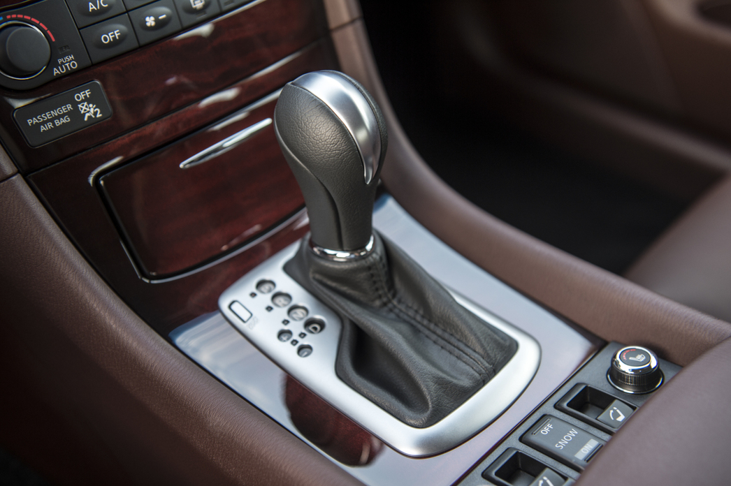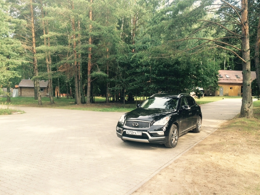 Если острота руля — это не про «Инфинити», то прожорливость — как раз про нее! Кроссовер с безальтернативным 2,5-литровым бензиновым мотором о 222 «лошадях» поедает с включенным «круизом» по трассе около 12 литров на сотню. Согласитесь, совсем не бюджетно. Про аппетит во время агрессивного педалирования или старта-торможения в городе я, пожалуй, лучше умолчу. Что до динамики, то невзирая на вполне себе адекватный табун по капотом, машина ускоряется посредственно. Хорошо хоть семидиапазонный «автомат» позволяет работать вручную — эмоций гонщика вы, конечно, не ощутите, но заставите автомобиль быть чуточку порасторопнее. Впрочем, для размеренных покатушек большего и не требуется.