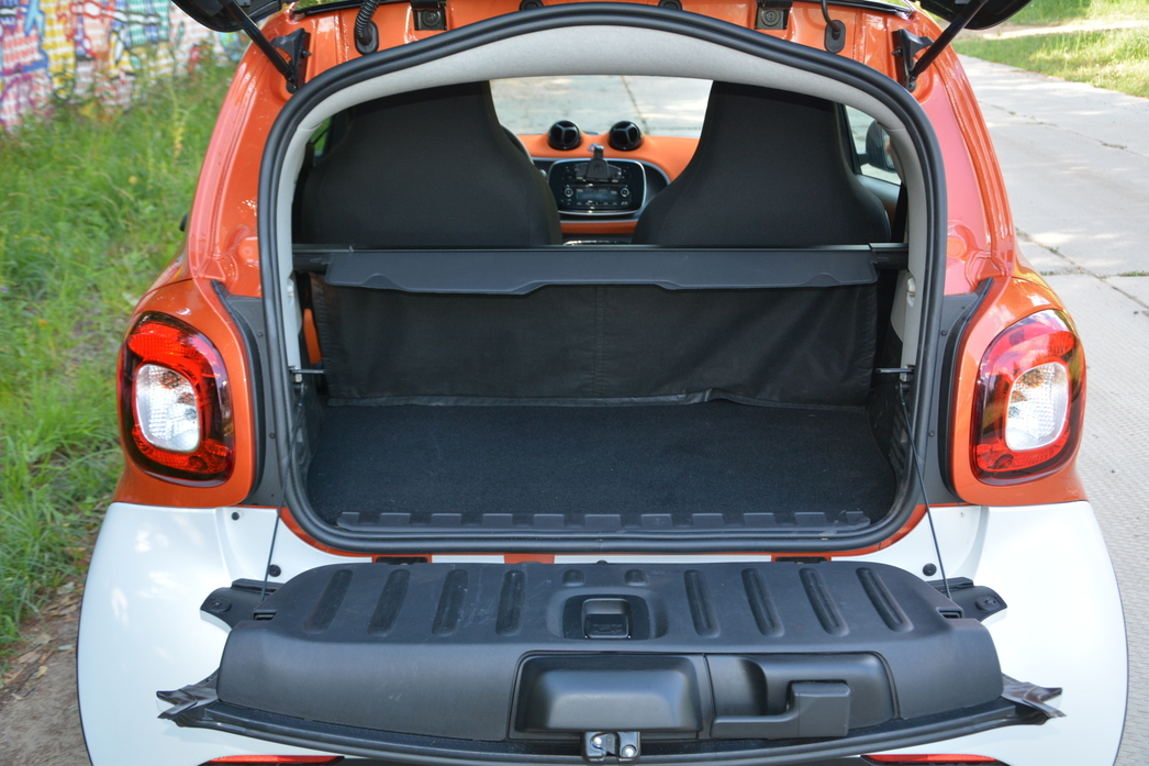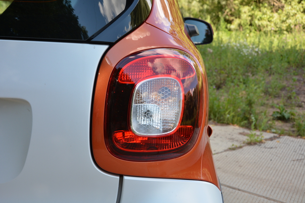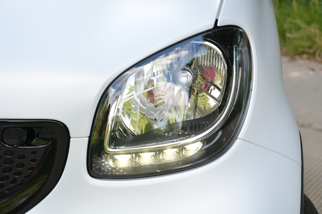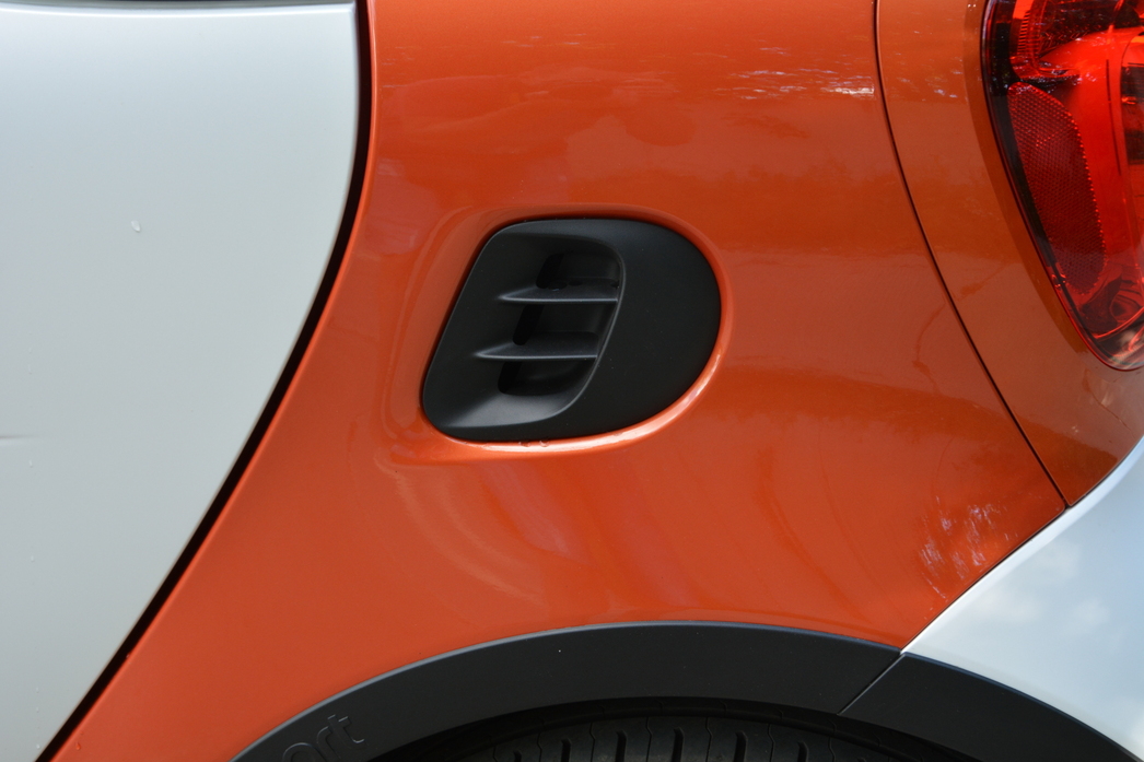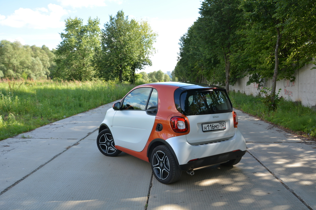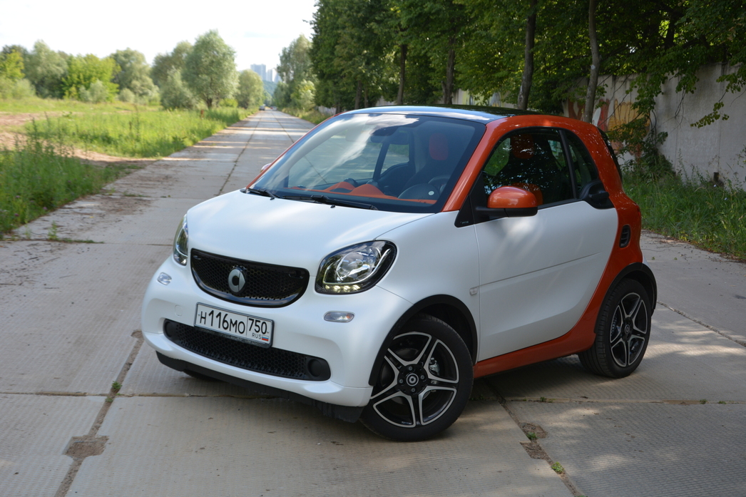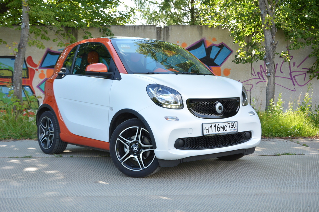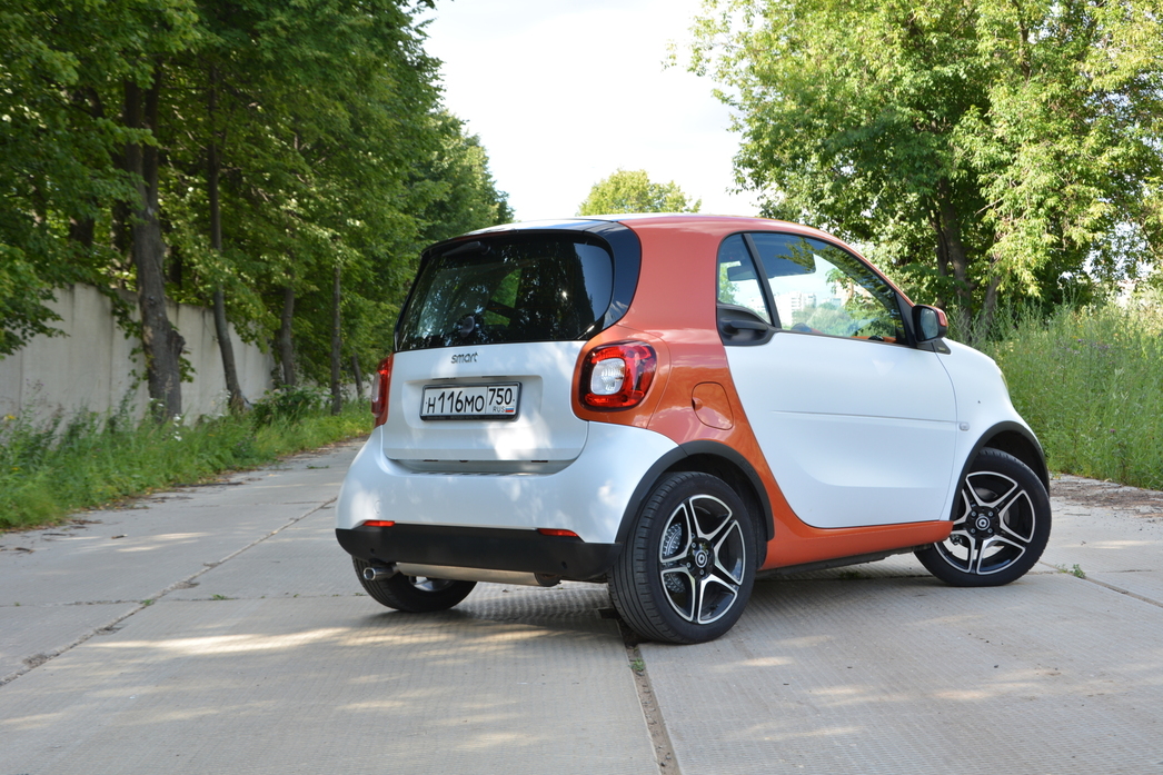 Smart и в прошлых своих воплощениях напоминал какого-то персонажа из детских мультсериалов «про машинки», но последнее поколение довело эту линию дизайна почти до полного апофеоза. Имея чадо мужеского пола дошкольного возраста, очень сложно, глядя на мордочку современного Smart, по привычке не ждать, что он вот сейчас моргнет «глазками» —фарами и не растянет в улыбке «рот» ниши в переднем бампере. Прогнать наваждение можно лишь зайдя к машине с фланга или тыла. Тут он также неповторимо узнаваем как и предшественник. Все та же каплеобразная форма, гигантские двери и т. п. Впрочем, фотографии расскажут об этом гораздо лучше.