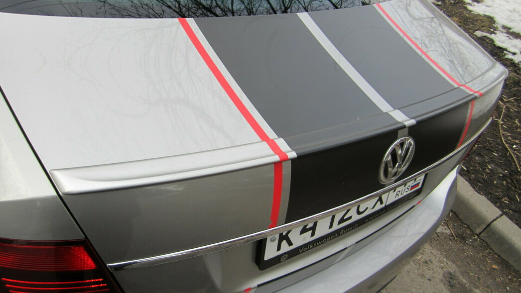 Стоит также упомянуть про резиновые расширители порогов и окрашенные в черный цвет корпуса боковых зеркал. Кстати, у доставшегося нам на тест седана крыша такого же колера, а капот и крышку багажника рассекают черно-красные полосы-наклейки. В такой окраске с конвейера сходили первые 300 экземпляров Polo GT.