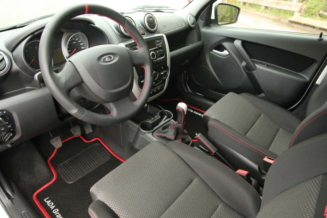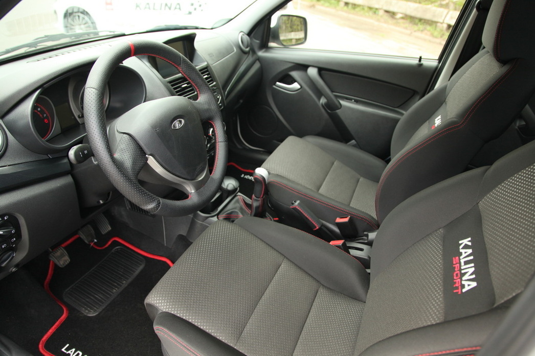 Спортивным лейтмотивом по салонам Granta Sport и Kalina Sport пробежалась красная прострочка руля и гипертрофированных до спортивных кресел. В остальном здесь все простенько, но без перекосов.