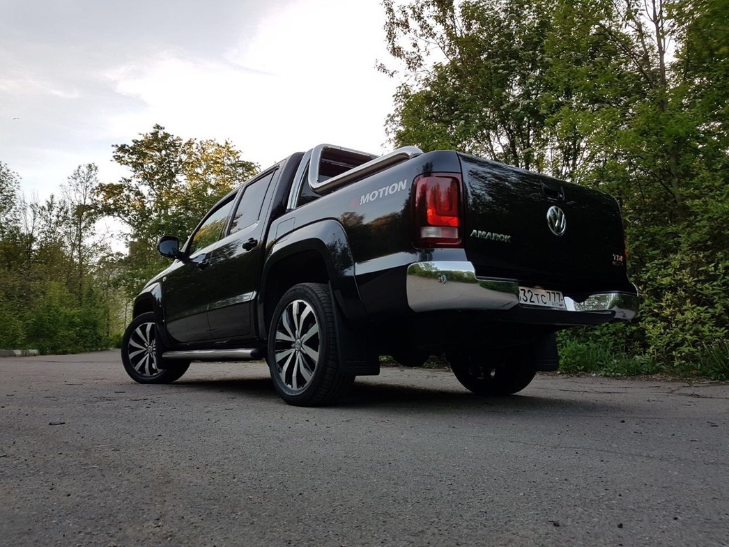 Amarok — совсем другое дело. Думаю, что не погрешу против истины, если скажу — вольфсбургский пикап весьма достойно выглядит на фоне городских седанов, кроссоверов и прочих сугубо пассажирских автомобилей: он гармоничен, лаконичен и технологичен даже с галогенными фарами. А с биксеноновыми, оттененными светодиодными ресничками в версии Highline, так вообще красавчик. И внушительное корыто грузовой платформы ничуть его не портит, органично вписываясь в дизайн экстерьера.