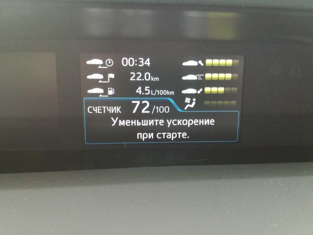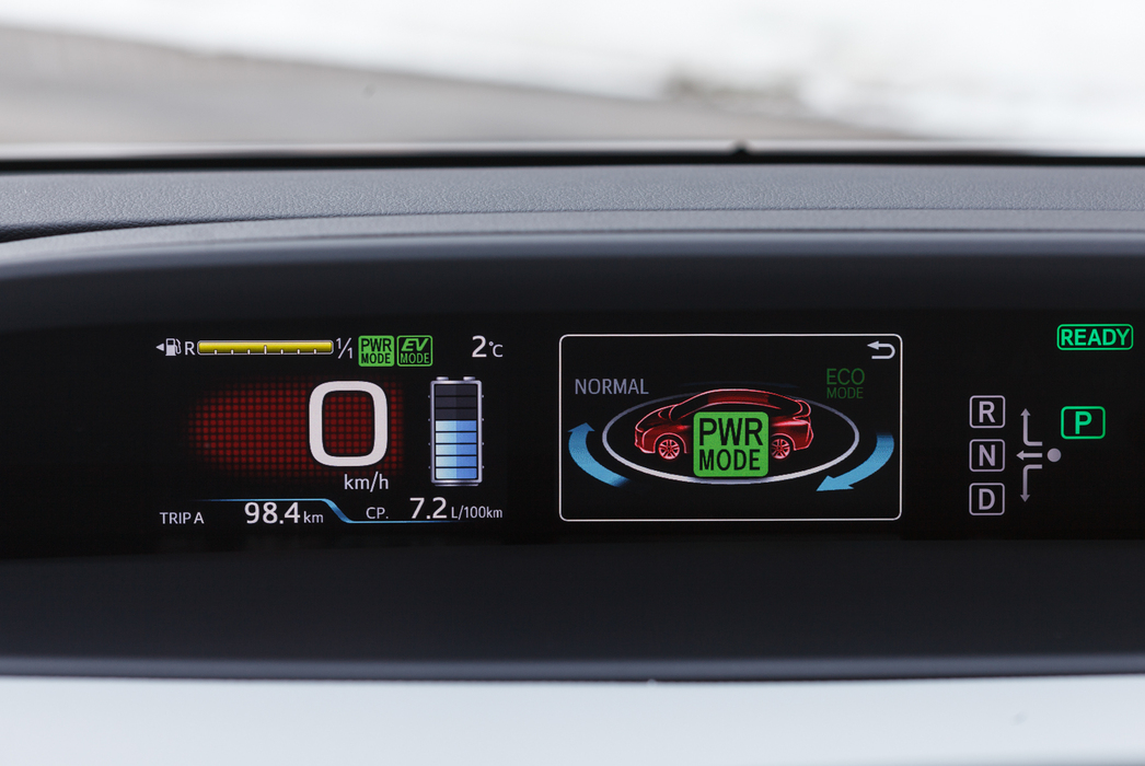 У автора этих строк ниже 5,5 л/100 км все в том же смешанном цикле опуститься не удалось. По крайней мере, именно эту цифру упорно демонстрировал мне бортовой компьютер. Сложно не доверять умной электронике, но вот незадача: сев в начале тест-драйва за руль Prius, я не только «обнулил» показания бортового компа, но и засек показания одометра машины. И так получилось, что в момент, когда он показал пробег в 230 километров с момента моего первого знакомства с Prius, индикатор запаса топлива находился ровно на уровне «пол-бака».