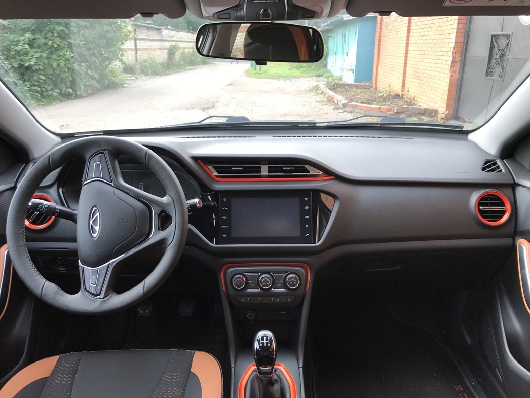 Те же мотивы прослеживаются и в салоне Chery Tiggo 2. Интерьер кроссовера выполнен в темных тонах с ярко-оранжевыми акцентами на креслах, дверных панелях, вставках на центральной консоли и тоннеле. «Вау! А это точно китаец?» — первая мысль, промелькнувшая в моей голове, когда я с любопытством заглянула в «кабину». Однозначно, «лайк»!