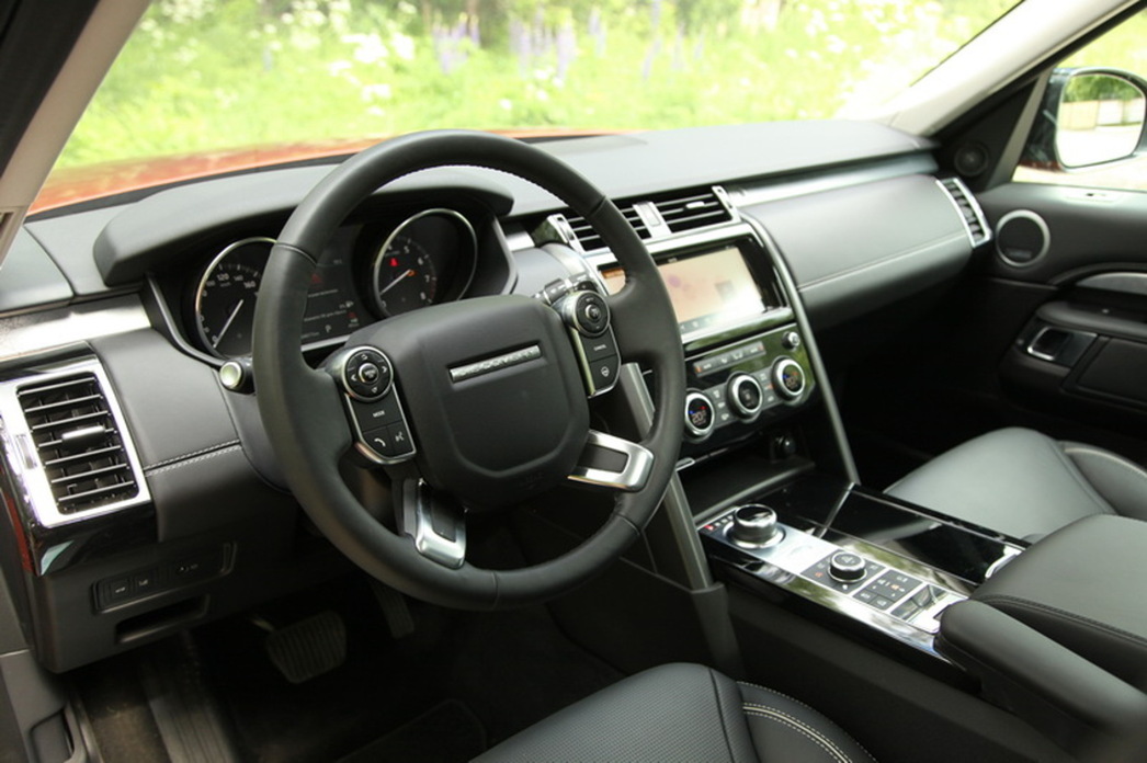 Говоря про скачок назад, я имею ввиду не только не выросшую вместимость нового Discovery. Так, например, премиальности в нем не стало от слова совсем. Четверка в разы приятней и брутальней внутри. Ее передняя панель покрыта кожей, которой «пятерке» не дали даже за доплату. Всевозможные «крутилки» также интересней у Disco 4 — по-внедорожному мощные, прорезиненные шайбы приятно ложатся в пальцы и по ним не промажешь даже при сильной тряске. Чего не скажешь о хлипких ручках у «пятерки».