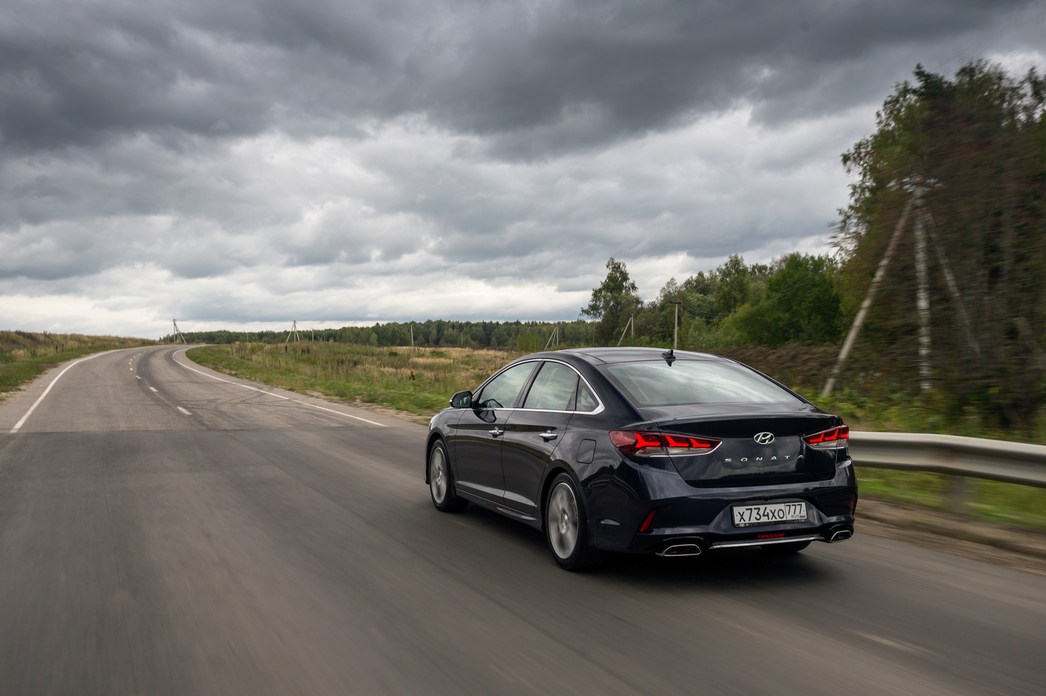 В России Hyundai Sonata продается с двумя бензиновыми моторами — Nu 2.0 MPI мощностью 150 л. с., и Theta 2.4 GDI производительностью 184 л. с. Нам удалось покататься на обоих вариантах, которые одинаково приятно удивили приличными настройками руля и комфортной подвеской. Причем двухлитровая «Соната» с 16-ыми дисками на разбитой дороге оказалась слегка помягче. Хотя ходовую топовой версии на 18-ых упрекнуть в дискомфорте язык не поворачивается, пусть даже на кочки и ямки она реагировала более звонкими простукиваниями, но на ровном покрытии демонстрировала лучшую плавность ходу. В любом случае в отношении водительского комфорта к «Сонате» в любом исполнении претензий нет.