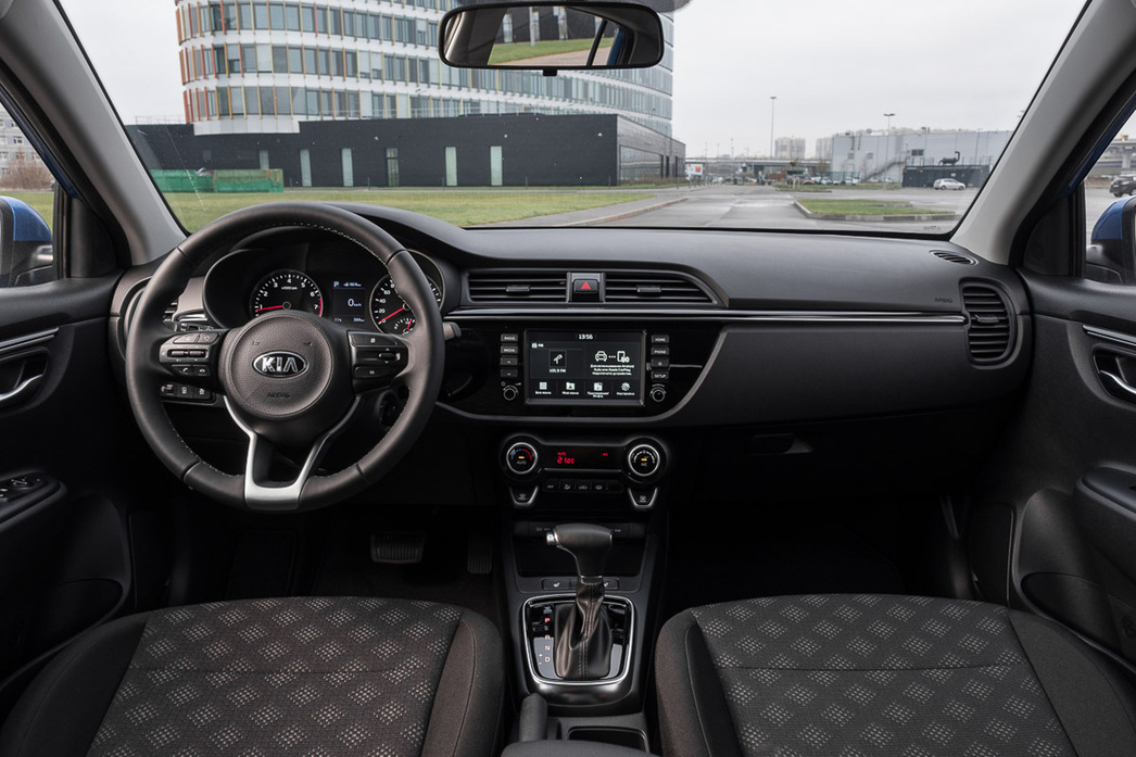 Интерьер новой модели идентичен с седаном Rio — уютный салон оформлен без излишеств в узнаваемом корпоративном стиле: характерные волнообразные линии и округлые формы смотрятся сдержанно и гармонично. Забавным решением выглядит ряд кнопок под блоком климат-контроля с двумя выпирающими клавишами по краям, похожими на клыки. В общем целом эстетика здесь мирно уживается с функциональностью.