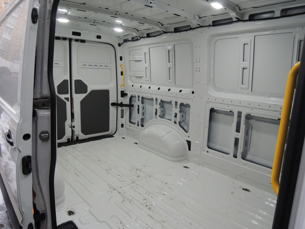 К тому же, грузовой отсек оборудован аж 6 светодиодными светильниками на потолке, так что при открытии сдвижной боковой или задних распашных дверей в кузове становится светло как днем.