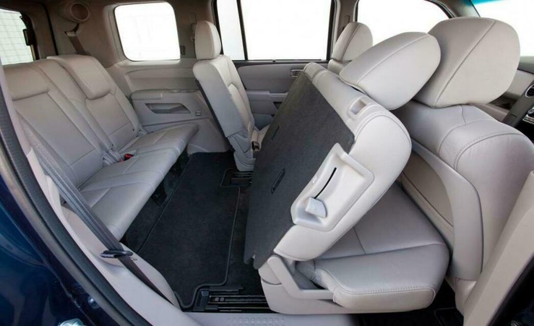 Трансформация салона в «Пилоте» продумана на «отлично». Откинуть спинку и сдвинуть вперед задний диван можно с помощью кнопки в торце подушки. Таким образом освобождается беспрепятственный проход на третий ряд, который на удивление гостеприимен даже к людям выше среднего роста. Места достаточно и в коленях, и над головой, но вряд ли здесь будет удобно троим пассажирам, если это не малорослые детишки. В любом случае средний подголовник имеется — ведь машина позиционируется как восьмиместная. Размер багажника при разложенных сидениях третьего ряда составляет всего 305 л, но если их сложить, отсек увеличится до 827 л, а, убрав спинки второго дивана, вы получите хибарку объемом 1779 л.