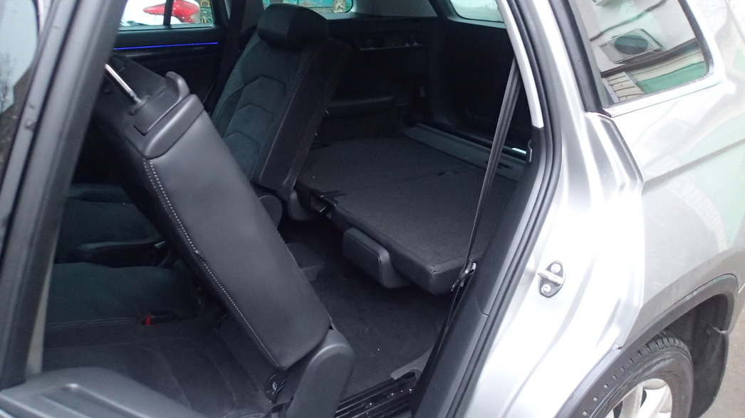 Тестовая модель в семиместной комплектации Style Plus, заряженная полным приводом, двухлитровым TSI мощностью 180 л. с и семиступенчатым DSG с двойным сцеплением, стоит минимум 2 615 000 рублей. Среди радостей жизни, доступных за эти деньги, присутствуют регулировки рулевой колонки по высоте и вылету, адаптивный круиз-контроль, «умный» ключ, запуск с кнопки, датчики парковки спереди и сзади, система автоматической парковки, камеры кругового обзора, электроприводы всех стекол, боковых зеркал, двери багажника, обогрев всех сидений, руля лобового стекла, форсунок омывателя, боковых зеркал, трехзонный климат-контроль. Имеющийся в наличии семиместный салон оценен в 51 900 ₽