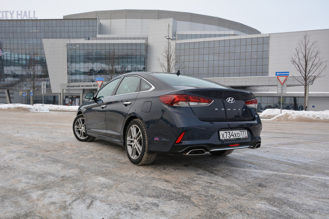В последний раз на российском рынке Hyundai Sonata видели лет пять назад. За время своего отсутствия модель успела сменить поколение, а затем еще и претерпеть рестайлинг, состоявшийся весной 2017 года. И вот в таком виде она явилась к нам. Пока эта «песенка» гуляла где-то за морями, ее дизайн изменился однозначно в лучшую сторону. Внешность прошлого поколения модели ассоциировалось с каким-то дешевым шаржем на мерседесовский S-класс. Современная же Sonata выросла из детского подражательства и уже ни на кого не хочет быть похожа. И правильно делает — современный стиль дизайна, принятый для машин Hyundai, вполне самодостаточен, что бы кто по этому поводу ни говорил.