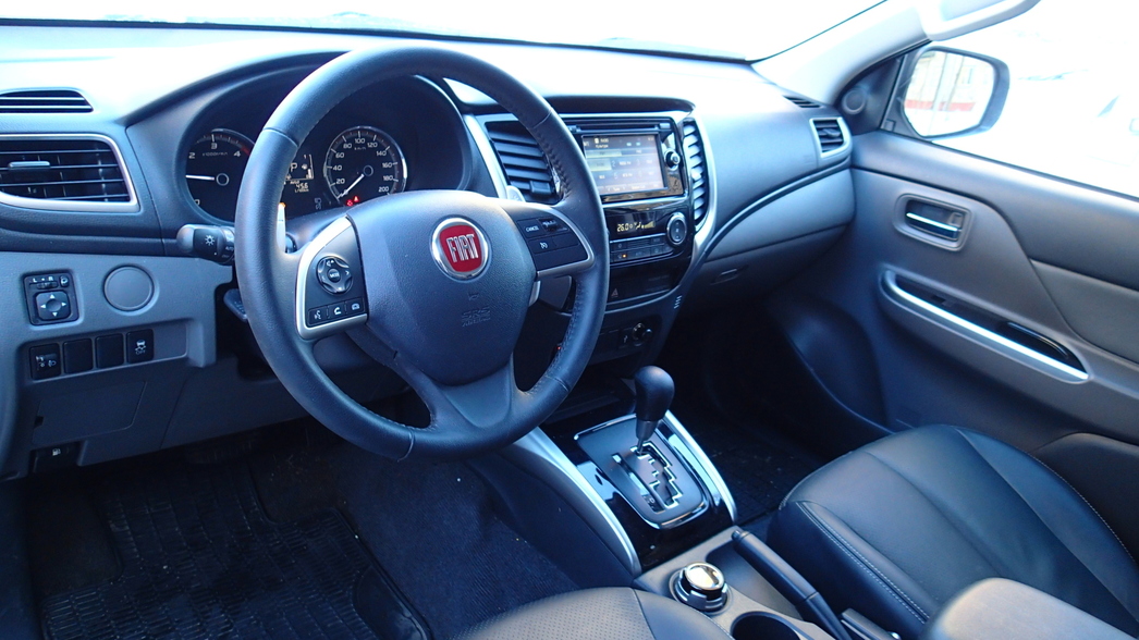 FIAT Fullback не имеет ничего общего с городскими мажорами, его кабину можно сравнить с добротно срубленной сторожкой, в которой сделан приличный ремонт. Кто знаком с Mitsubishi L200, тот незамедлительно обнаружит полное сходство в интерьерах двух пикапов: те же недорогие материалы отделки, классическая компоновка приборов и элементов управления.