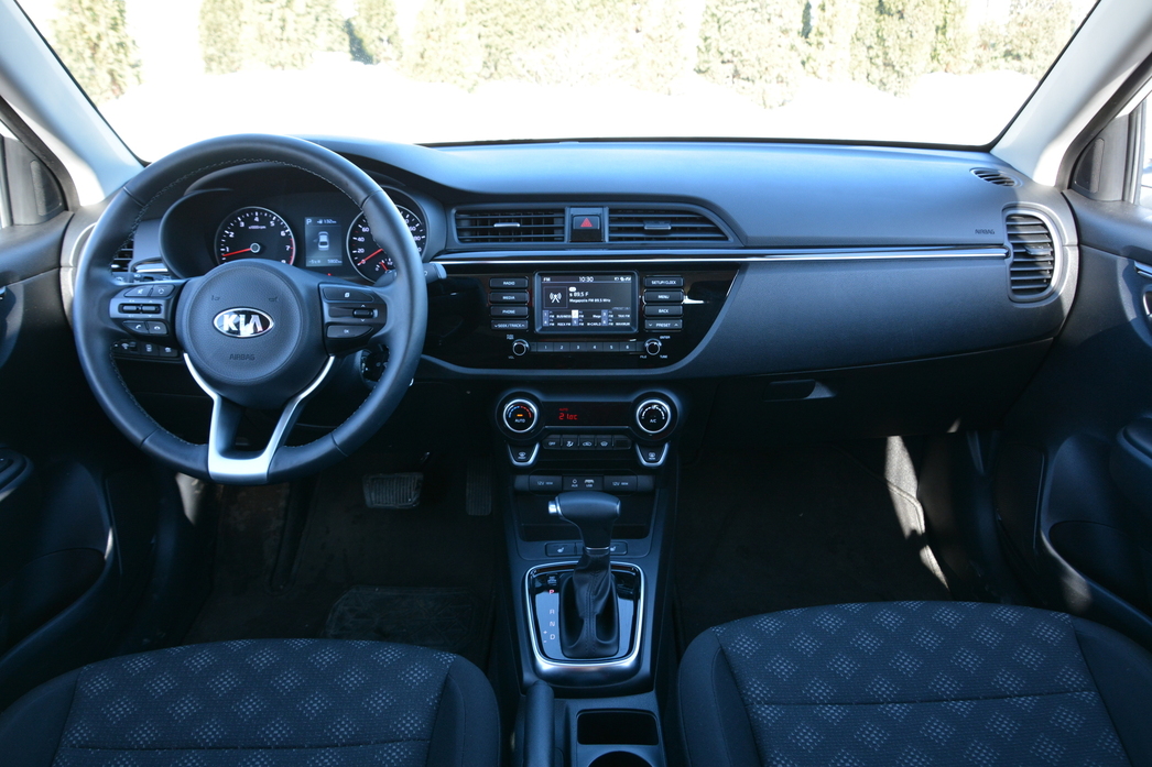 У KIA Rio приборная доска выгладит практически также как в старшей модели — например, у Optima. Циферблаты, мониторчик борткомпьютера между ними — все вполне «взрослое». Если, например, не знать заранее, откуда какой-либо элемент взялся, вполне можно решить, что он предназначен для европейской машины и, причем, явно не самой дешевой. На руле Rio присутствуют все положенные электронные «цацки»: управление мультимедиа, бортовым журналом и прочим.