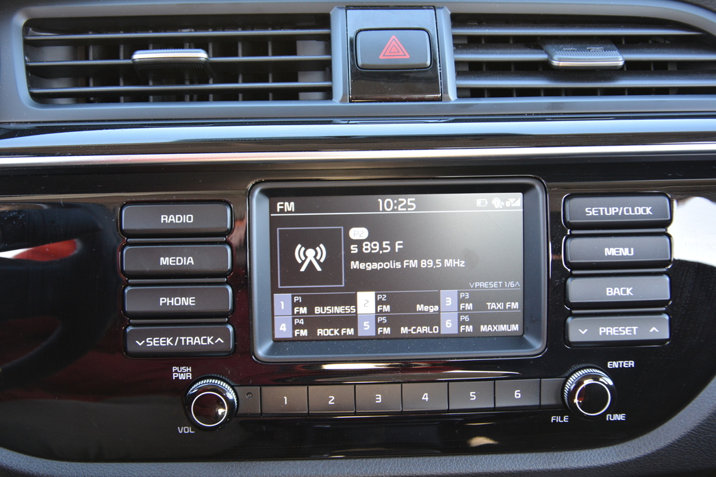 В этот раз на тест, кстати, нам попалась KIA Rio далеко не в максимальной комплектации — с «музыкой» попроще, без 7-дюймового тачскрина. Но и кнопками под небольшим дисплеем для перебора каналов радио, как оказалось, пользоваться более чем удобно.