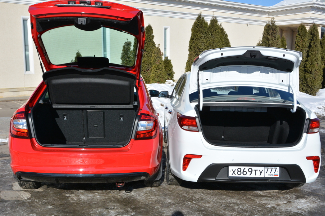 Что касается внутреннего пространства, то пассажирам заднего ряда в Skoda будет гораздо удобнее — седокам галерки в KIA придется потесниться. А вот потолок в корейском седане прижимает головы обитателей дивана не так критично, как крыша чешского лифтбэка. Зато багажный отсек Rapid обладает явным преимуществом — не только по объему (530 л против 480 л), но и по удобству компоновки.