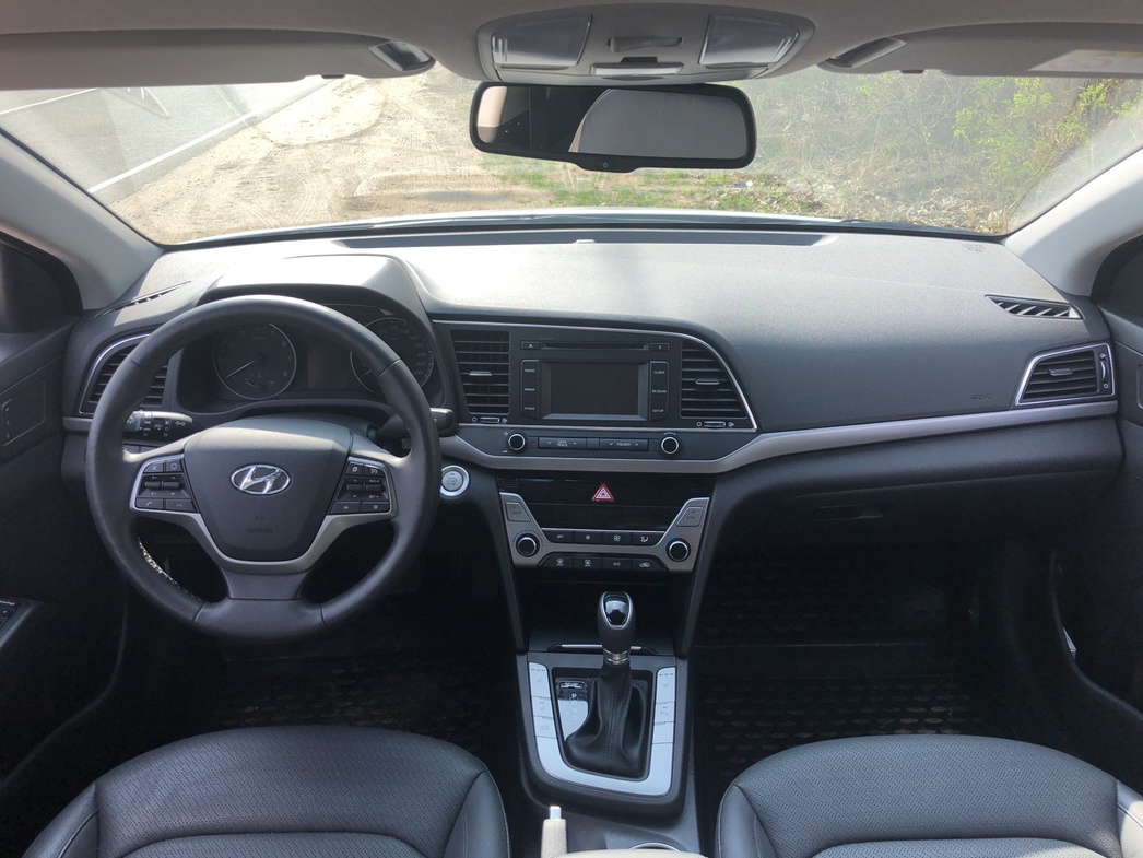 Присаживаюсь в водительское кресло, и Elantra заботливо подвигает кушетку согласно заданным ранее параметрам. Первое, что привлекает внимание — развернутая к драйверу центральная консоль и аккуратно выстроенные в ряд клавиши управления. Пластик хоть и жесткий, но отделка выполнена добротно и опрятно. Находиться в салоне этого автомобиля однозначно приятно.