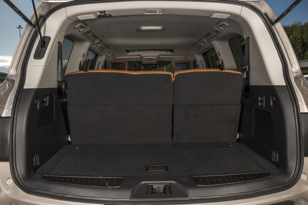 Среди прочих обновок — иного дизайна руль и рукоять коробки передач, а венчают картину новые восьмидюймовые мониторы в подголовниках, которые теперь работают отдельно друг от друга. Иными словами, дети не устроят драку за мультики — пока один ребенок считает «покемонов», другой может спокойно себе следить за процессом размножения бегемотов в программе про животных. В общем, понятия «модно» и «трендово» теперь и про QX80.