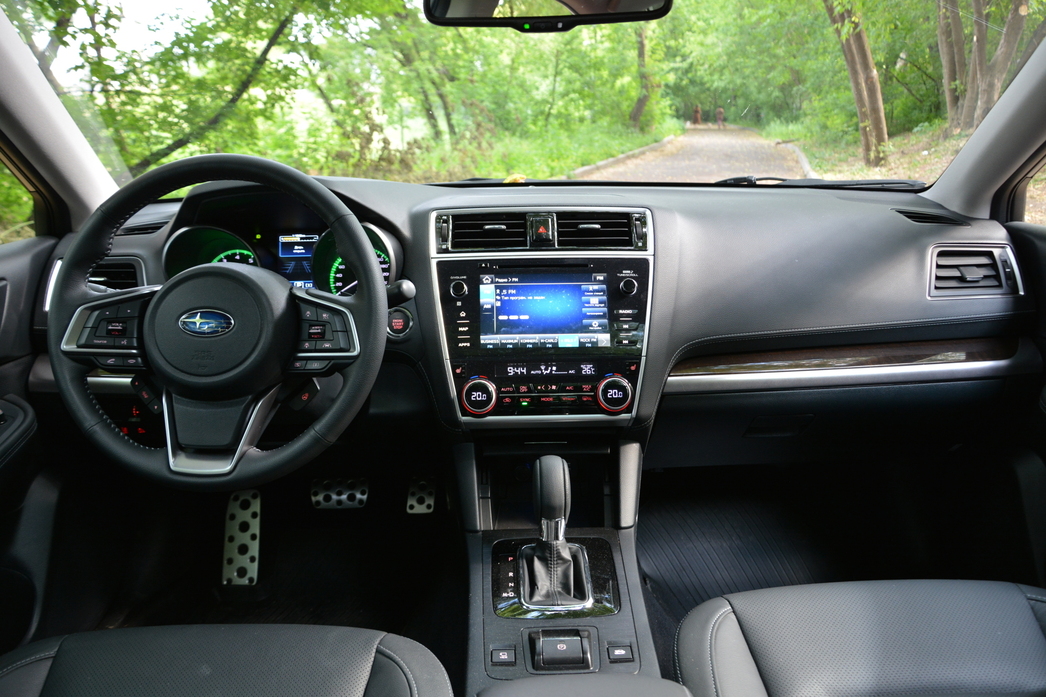 Приборная доска седана особой новизной не блещет. Тут все выглядит практически так же, как и на дорестайлинговом варианте. А вот центральная консоль стала совершенно иной. На ней появился прекрасный — большой и со вкусом оформленный — тачскрин «мультмедийки» со всеми положенными для современной машины «примочками». Блок управления климатом тоже посвежел. Например, «крутилки» настроек температуры обзавелись собственной индикацией этой самой температуры. В этом смысле у Legacy все стало «как в лучших домах», за что японцам, как говорится, — безусловный «лайк»!