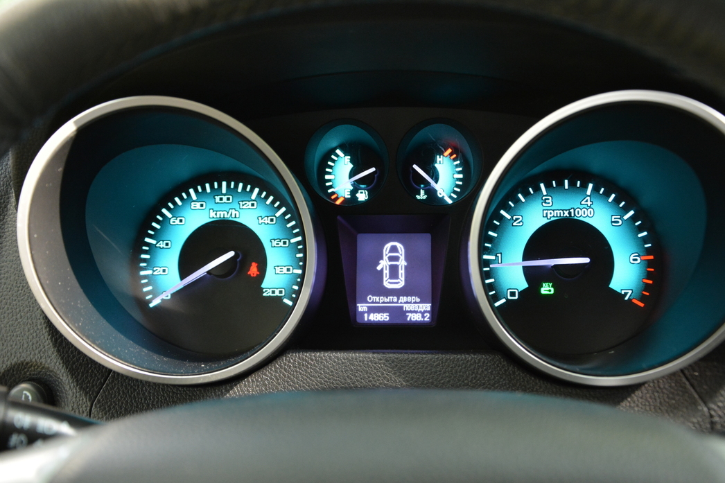 При знакомстве с салоном ощущение сохраняется. «Приборка» простоватая с виду, но цветная и контрастная. Ее зеленоватая гамма где-то даже гармонирует с оформлением тач-скрина мультимедийной «башки» центральной консоли.