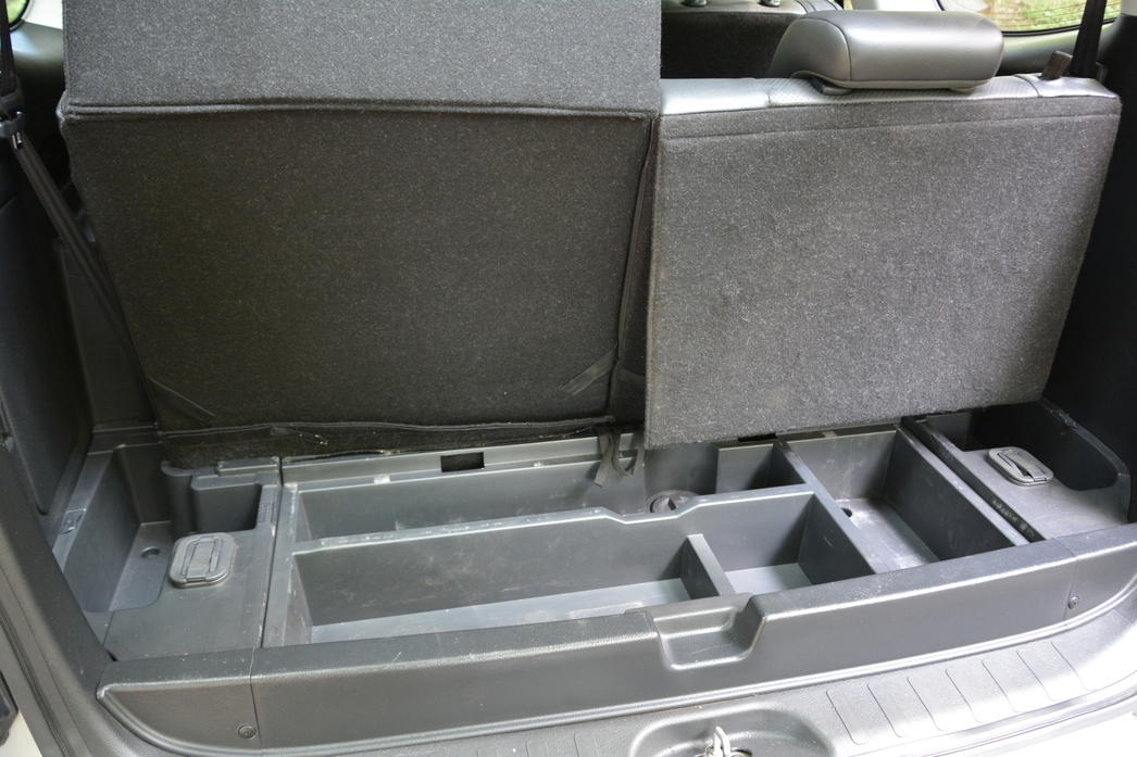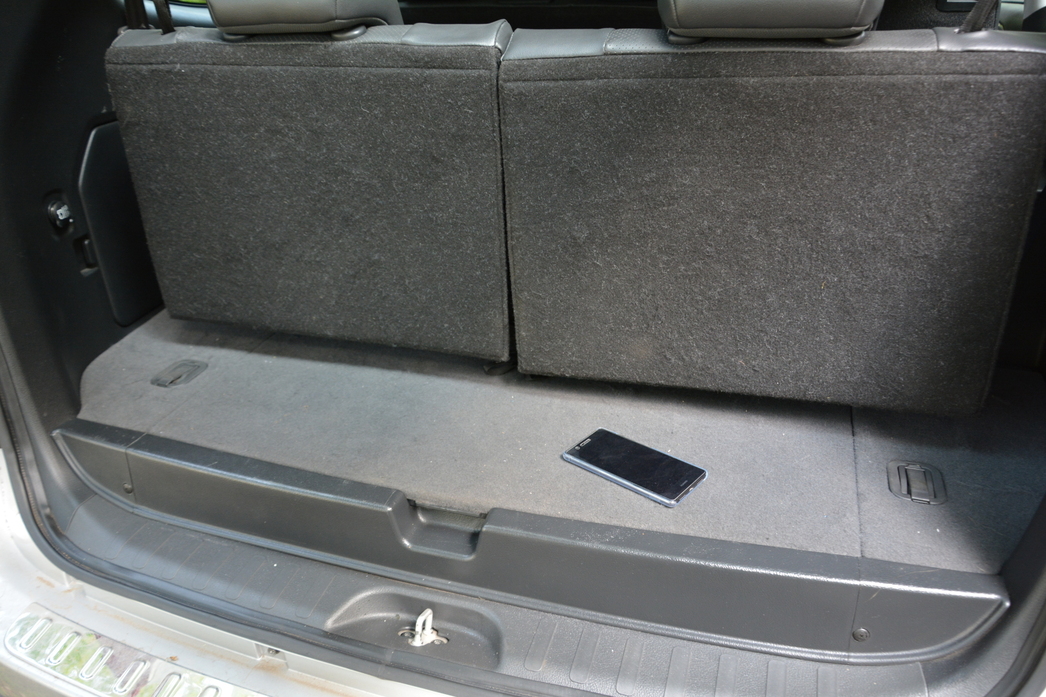 Зато есть в багажнике есть «подполье» для мелочей и воздуховод кондиционера для третьего ряда: один, в правом борту. На фотографиях для осознания масштабов бедствия при несложенных спинках третьего ряда на полу багажника лежит смартфон средних размеров.