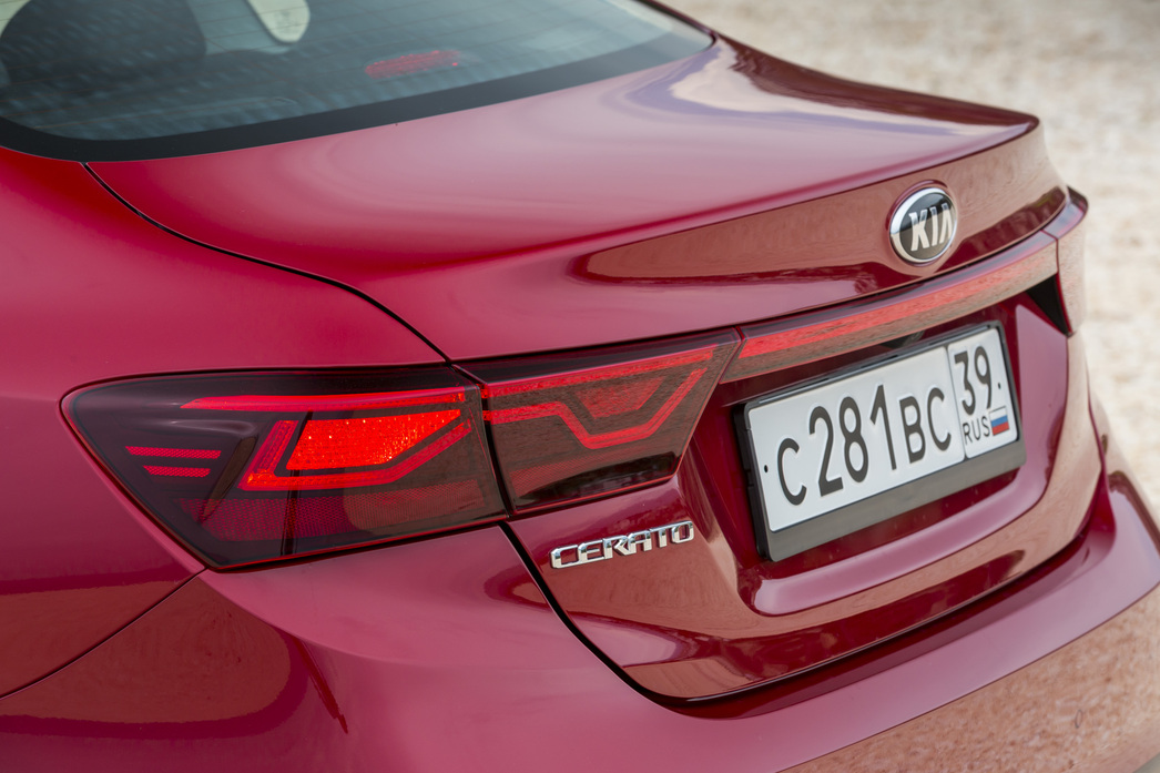Но так или иначе, но внешне новый KIA Cerato выглядит на порядок круче предшественника. Во многом благодаря тому, что он стал и выше, и длиннее, и шире. И пусть «цифры роста» не особо велики (5—80−20 мм соответственно), но при таких габаритах и прежний автомобиль выглядел бы интереснее: совершенно иначе зазвучали и изгибы крыши, и строгий силуэт, и укороченные свесы. В принципе, все эти элементы остались практически без изменений, но вытянувшийся передок, еще больше укороченный задок и как бы прилипшая к нему кабина сделали седан похожим на хищника, бросающегося на жертву.