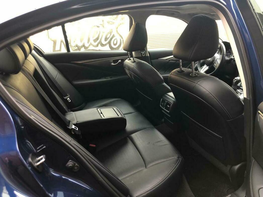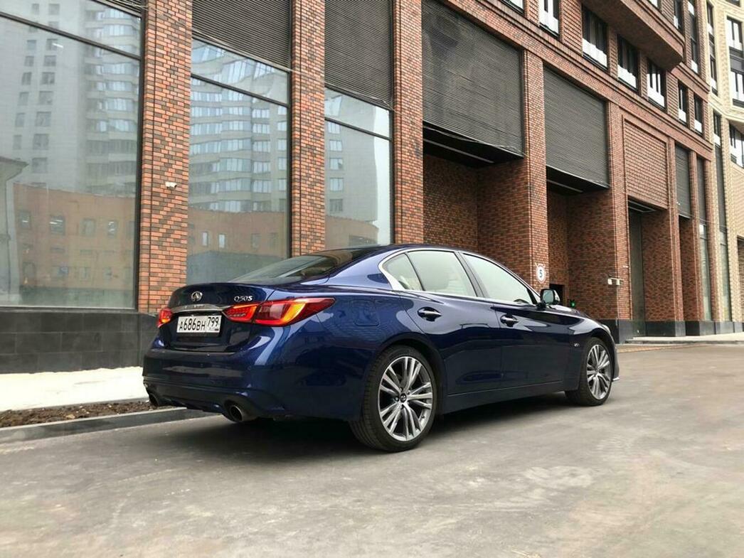 В общем, все довольно строго, но лаконично и информативно: к машине и ее органам управления привыкаешь довольно быстро, а что еще нужно водителю? Не будут обижены и пассажиры — несмотря на компактность, двое взрослых людей сзади поместятся без особых проблем, разве что высокорослые граждане, скорее всего, будут упираться макушкой в потолок — задняя линия крыши Infiniti Q50 уж больно поката, но тут уж полноценный комфорт принесен в жертву ради стильного дизайна.