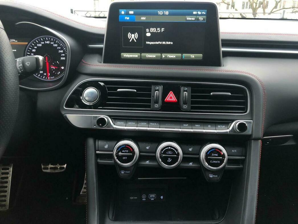 Дизайнеры корейской машины вынесли единственный монитор на верх торпедо, оформив его в виде «телевизора», торчащего над уровнем «подоконника». Его тоже можно «тачить», управляя мультимедиа. А блок управления климатом в виде «крутилок» и кнопок занял почти всю полезную поверхность центрально консоли. Поскольку она у G70 отнюдь не узенькая, корейцам пришлось все эти органы управления «размазать» по ней «тонким слоем».
