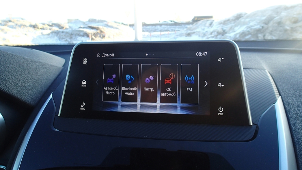 Что касается интерьера, то центральная консоль и у Mitsu, и у Hyundai оформлена по схожей схеме — вверху отдельный планшет медиасистемы, под ним пара горизонтально вытянутых воздуховода, потом идет блок климат-контроля с двумя регулировочными кругляшами и монохромным экраном посередине, ниже — USB и AUX разъемы с розеткой, а в подвале прячется небольшое отделение для мелочей.