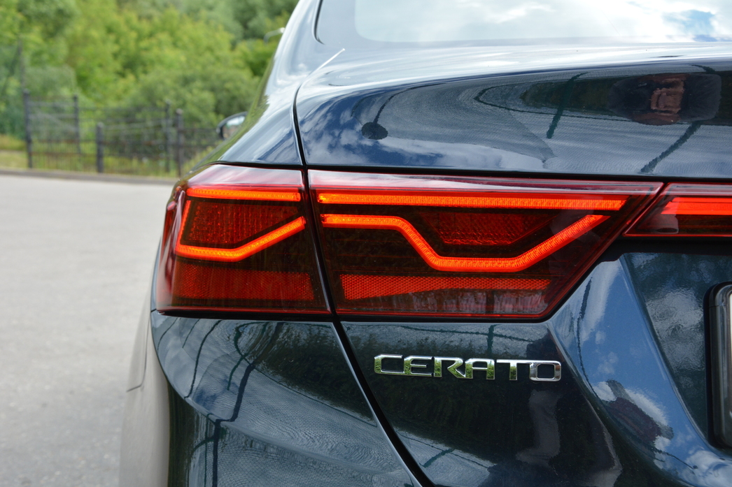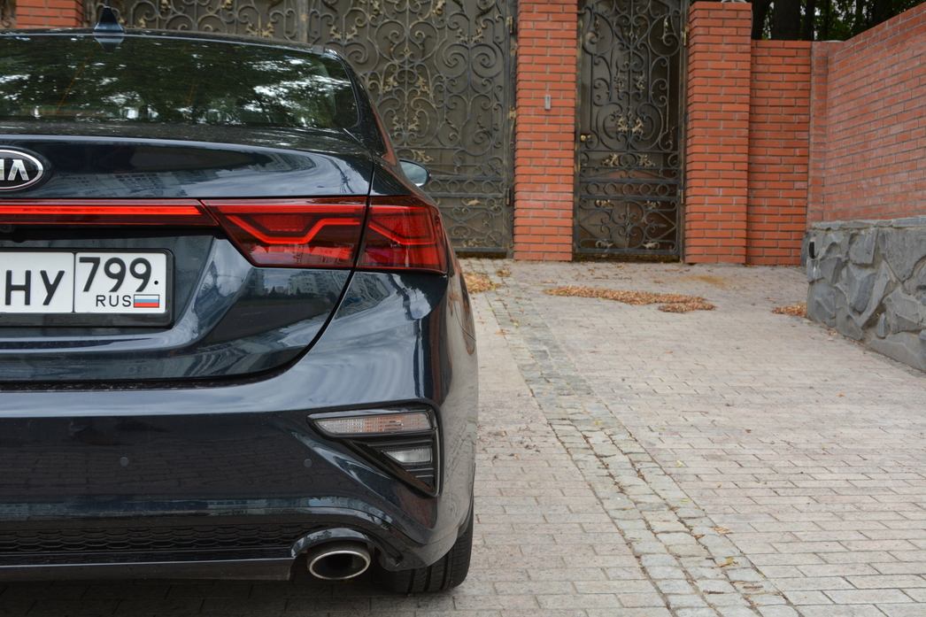 Сзади тоже все пристойно: симпатичный дизайн стоп-сигналов, соединяющая их «планка», повторители поворотов внизу бампера — своеобразия в корме Cerato более чем достаточно, чтобы сразу выделить ее в городском потоке.