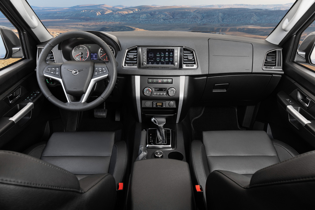 В салоне «автоматического» «Патриота», по сравнению с его «механической» версией, почти ничего не поменялось. Лишь селектор АКП занял место рычага «механики» и на центральной консоли появился сенсорный экран новой «мультимедийки».