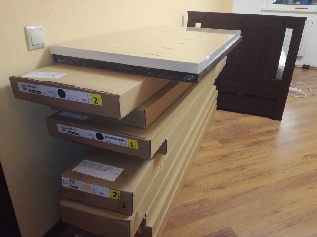 Итак, дети выбрали подходящие «мебеля», а родители решили заодно купить еще и новую двухэтажную кровать. Не для себя — для мелкого. Тут же стало понятно: на нашем, далеко не самом маленьком семейном внедорожнике все это счастье из магазина не увезти. Ведь речь зашла о более чем 250 килограммах всевозможных деревяшек. Причем длинна некоторых упаковок превышала 2,2 метра.