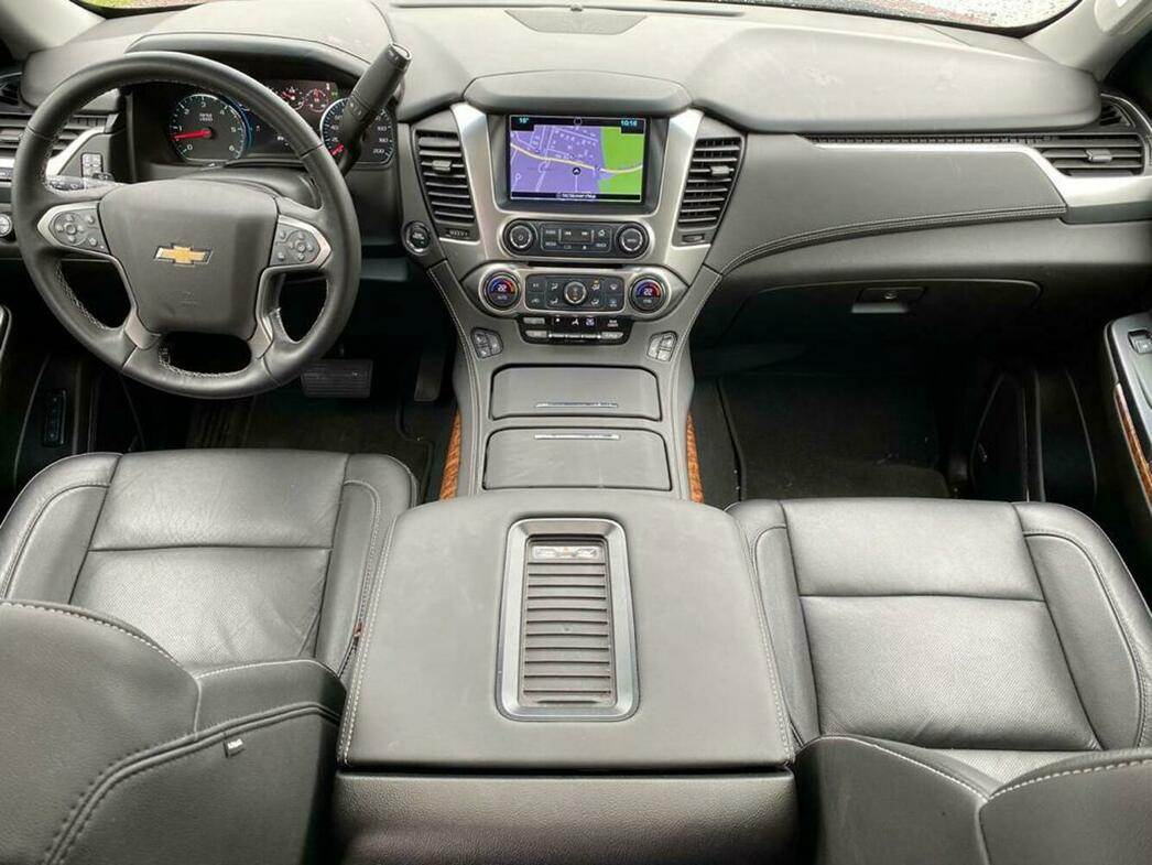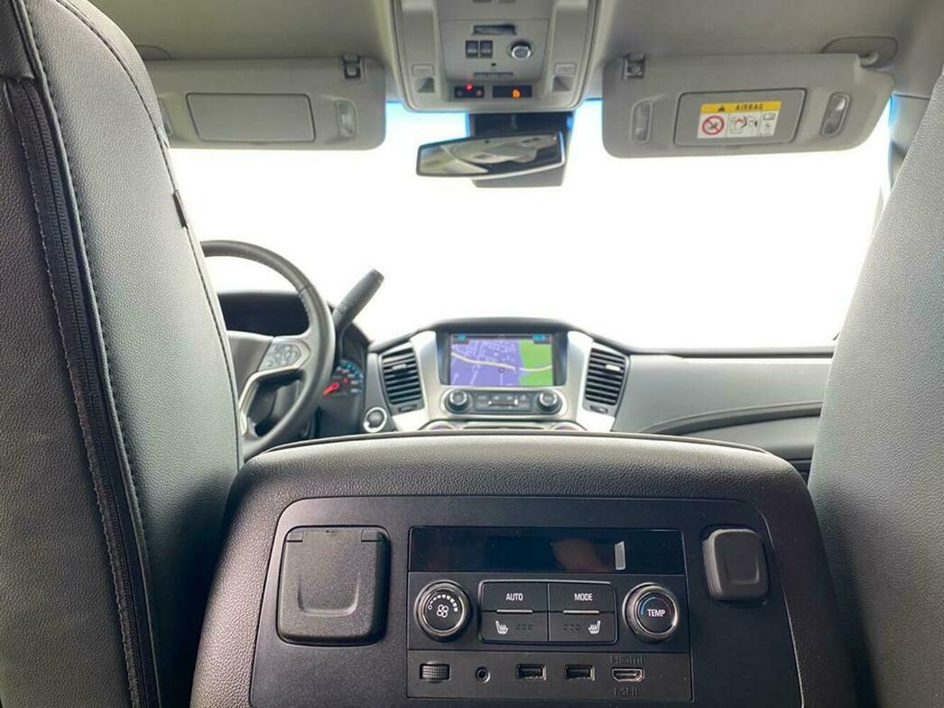 Его огромная морда словно разделена на две горизонтальные части, «перья» передних фар затекают на крылья. Ясное дело, головная оптика оборудована современными ДХО и прожекторными фарами с автоматическим переключением на дальний свет. А огромные 20-дюймовые хромированные колеса только подчеркивают серьезный и уверенный настрой Chevrolet Tahoe.