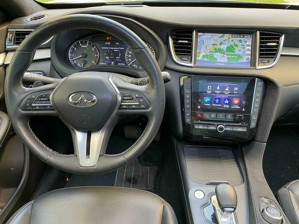 Дверь Infiniti QX50 надежно прикрывает порог от грязи, так что, усаживаясь в салон, можно не беспокоиться о чистоте брюк или пальто. Постепенно обживаясь внутри QX50, понимаю, что японские инженеры не ориентировались на европейских конкурентов. Кресло, обтянутое кожей, сильно мягче, чем у «немцев» и «британцев», а валики боковой поддержки — меньше. Такая «сидушка» понравится людям плотного телосложения.