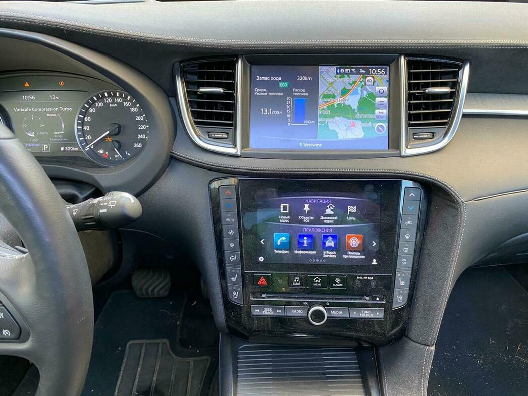 Посадка хороша, но к верхнему экрану все равно приходится тянуться. А при упоминании о посредственной графике на дисплеях, уверен, японские программисты начинают икать. Оболочка софта — это то, на чем не стоит экономить. Как и у любого авто, к некоторым вещам в «Инфинити» нужно привыкать: например, не так-то просто подсоединить телефон к головному устройству во время движения. На заднем ряду довольно просторно, но запас места для ног в районе ступней — скромный. Обогрева дивана нет, а он бы пригодился. Особенно если кроссовер «живет» в семье, где есть дети.