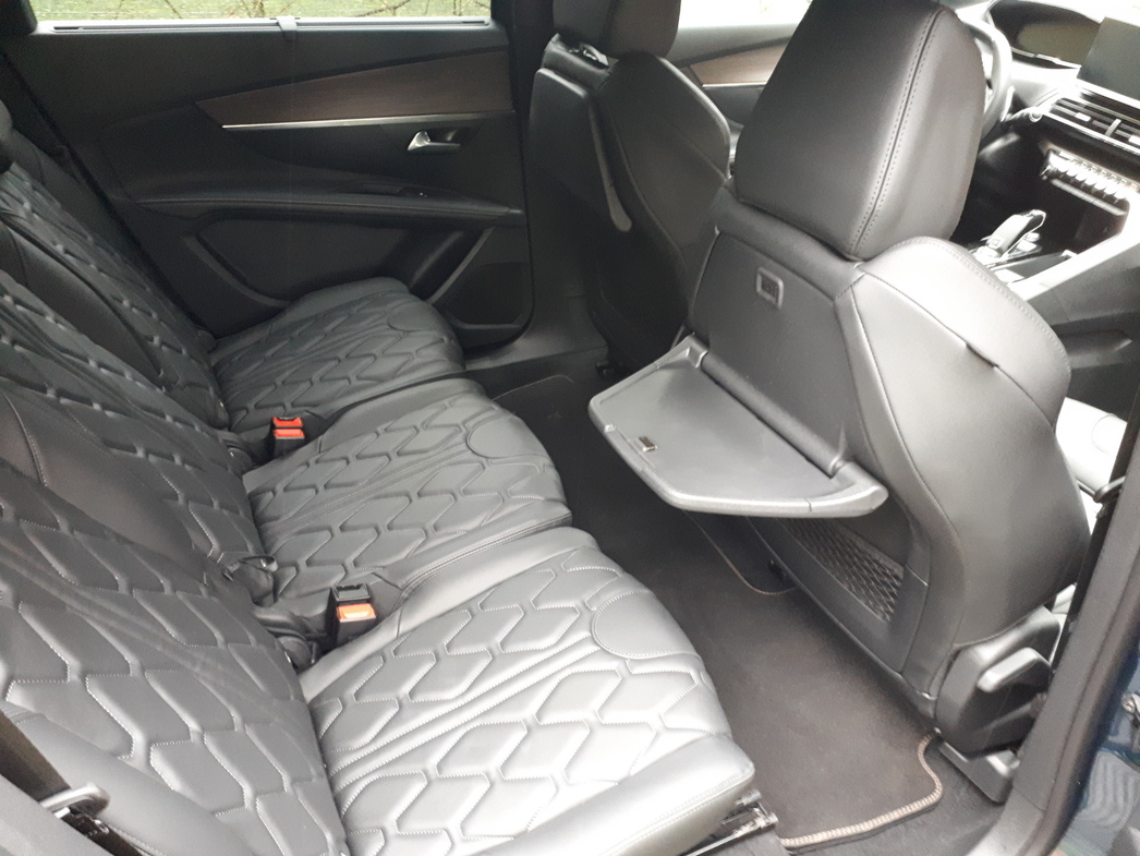 В моем «Пежо» кресла отделаны кожей с ромбовидным рисунком. Выглядит симпатично, да и к профилю кресла нет претензий. Здесь есть электрорегулировка поясничного подпора и даже функция массажа. А еще у кроссовера по умолчанию теперь три ряда кресел. Напомню, что раньше третий ряд был опцией.