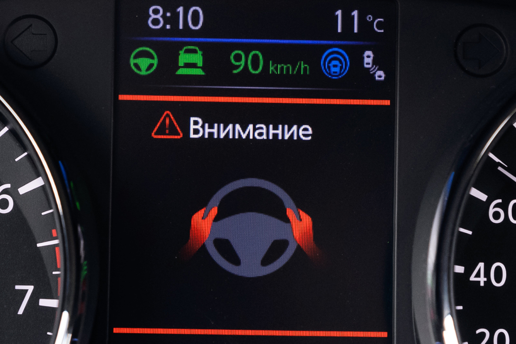 Так вот: электроусилитель улавливает самое малейшее воздействие, которое оказывают конечности водителя, и если «усилок» не почувствовал в течении 5 секунд работу человеческих мышц, то воспринимает это как отсутствие рук на рулевом колесе. Причем, если на других авто секунд на 15—20 реально можно бросить руль, то в Nissan система забьет тревогу через 5, максимум через 7 секунд, что было нами проверено многократно.