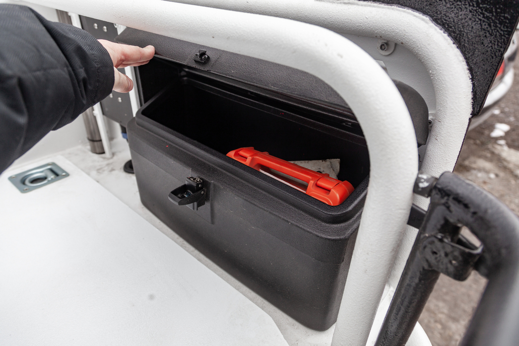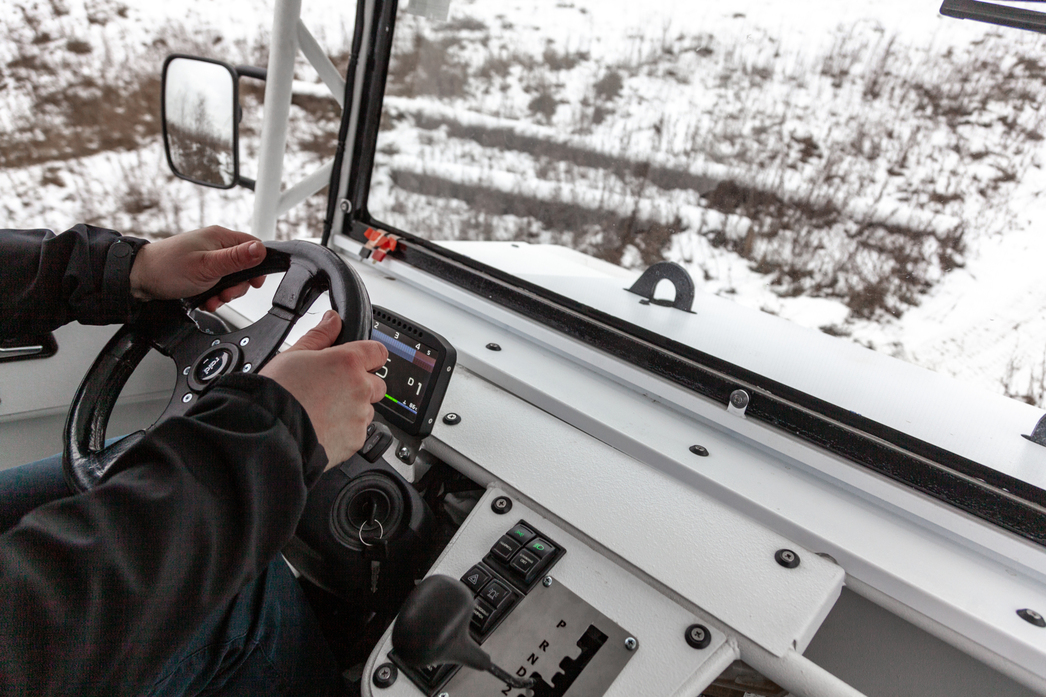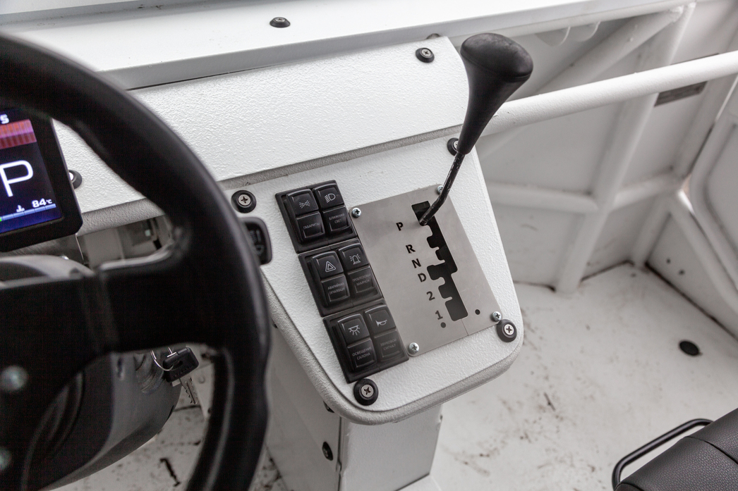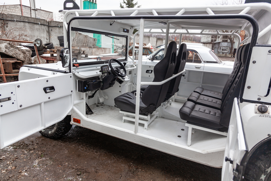 Передние кресла имеют продольную регулировку и регулируются по углу наклона спинки. Также есть небольшой ход и у рулевой колонки. И говоря о пассажирах, вновь невозможно не вспомнить о безопасности. Конструкция шахтенной техники обязательно должна соответствовать международным требованиям FOPS (защита от падающих предметов) и ROPS (защита от опрокидывания). Собственно, чтобы выполнить их «Стахановец» получил каркас из бесшовных 40-миллимитровых труб, которые обеспечили необходимую жесткость не только кузову, но и крыше.