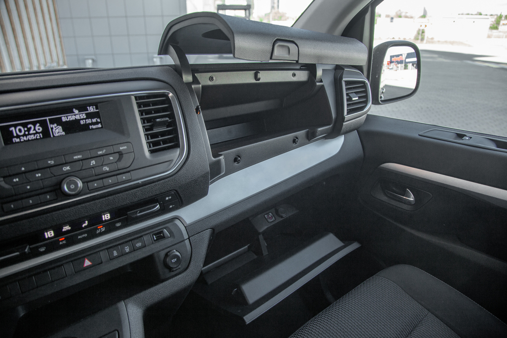 Но есть у SpaceTourer и минусы, о которых также стоит сказать. Лично для меня место водителя показалось недостаточно удобным с точки зрения эргономики. Например, те же подстаканники, которые должны быть под рукой, здесь расположены в верхней части передней панели. Приходится тянуться.