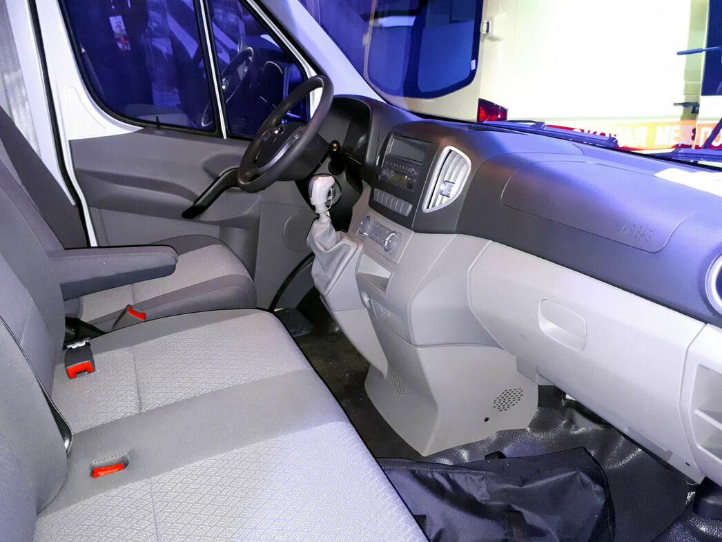 Внешне фургон напоминает Mercedes-Benz Sprinter второго поколения, но сходство обманчиво. Кузовные панели тут свои, а не от «Мерса». Кстати, качество сборки неплохое. Каких-то «косяков» я не заметил. Единственное, что бросилось в глаза — крупные соты декоративной решетки. За ними нужно ставить сетку, чтобы камни не бомбардировали радиатор кондиционера.