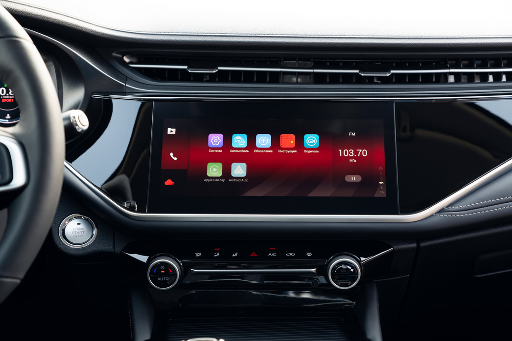 Зато какая в Omoda S5 звукоизоляция — здесь тихо, как в очереди к стоматологу. Посторонние шумы не раздражают, позволяя спокойно разговаривать даже на запредельной скорости. Пожалуй, лишь при резком ускорении в салон пробивается «крик» мотора, который, впрочем, легко погасить достойным звучанием аудиосистемы, умеющей воспроизводить музыку с мобильных устройств, как по «воздуху», так и посредством Android Auto и Apple CarPlay.